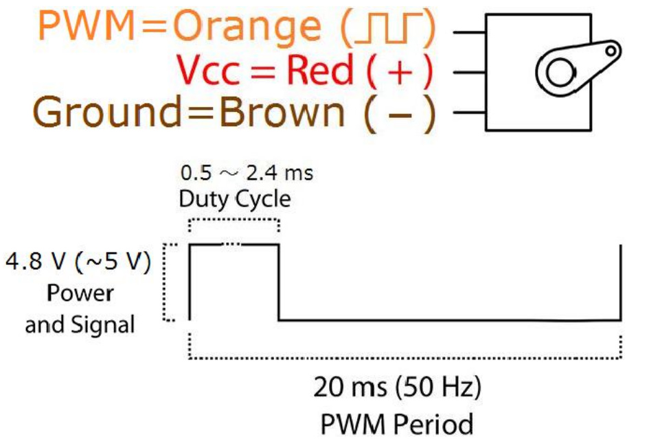 データシートを見ると茶色がGND、赤が電源、オレンジがPWMです。TAMIYA 1/12RC XB ランチボックスカーのサーボも似たようなものです。SG90を上手く動かせばランチボックスのサーボも制御できるでしょう。