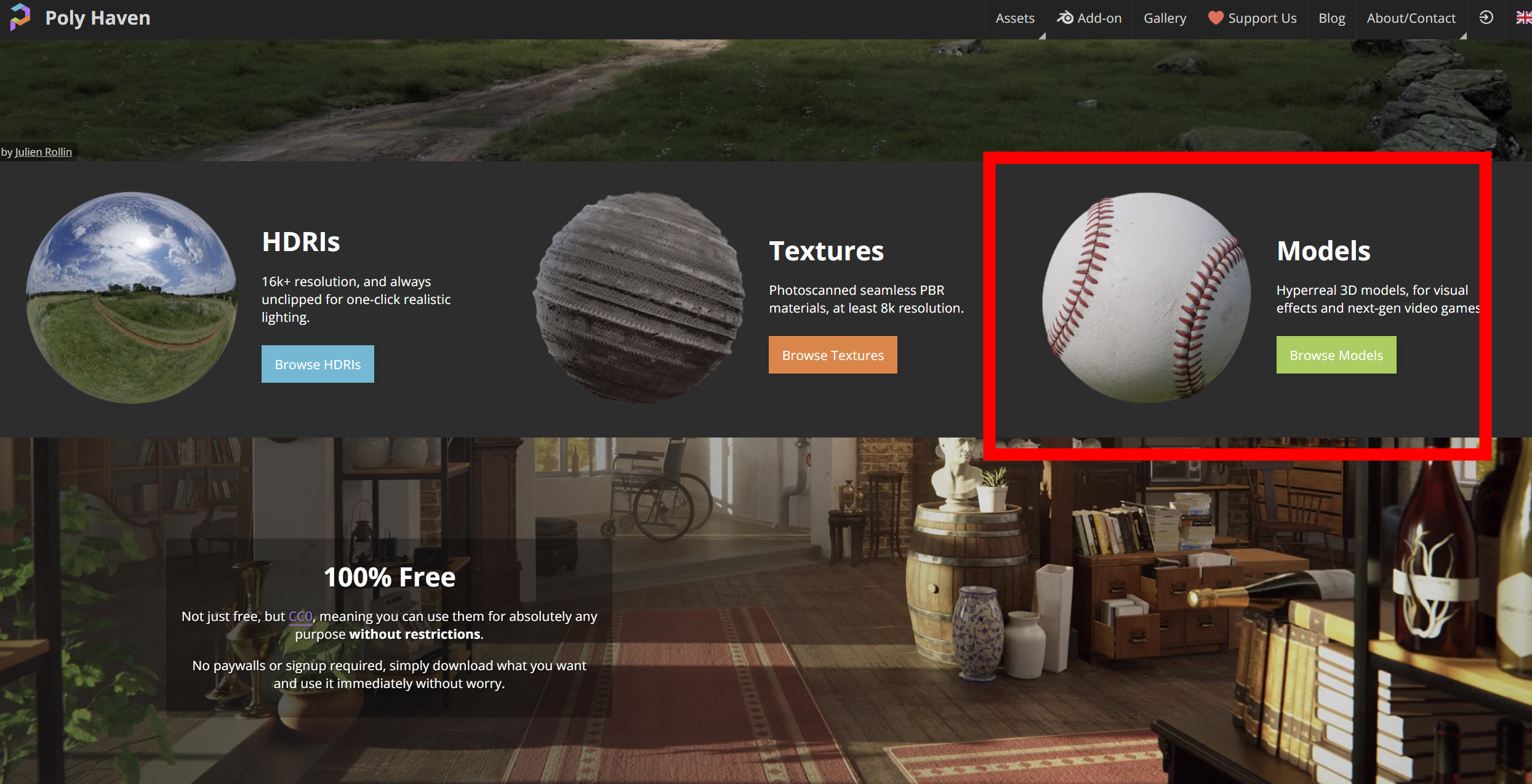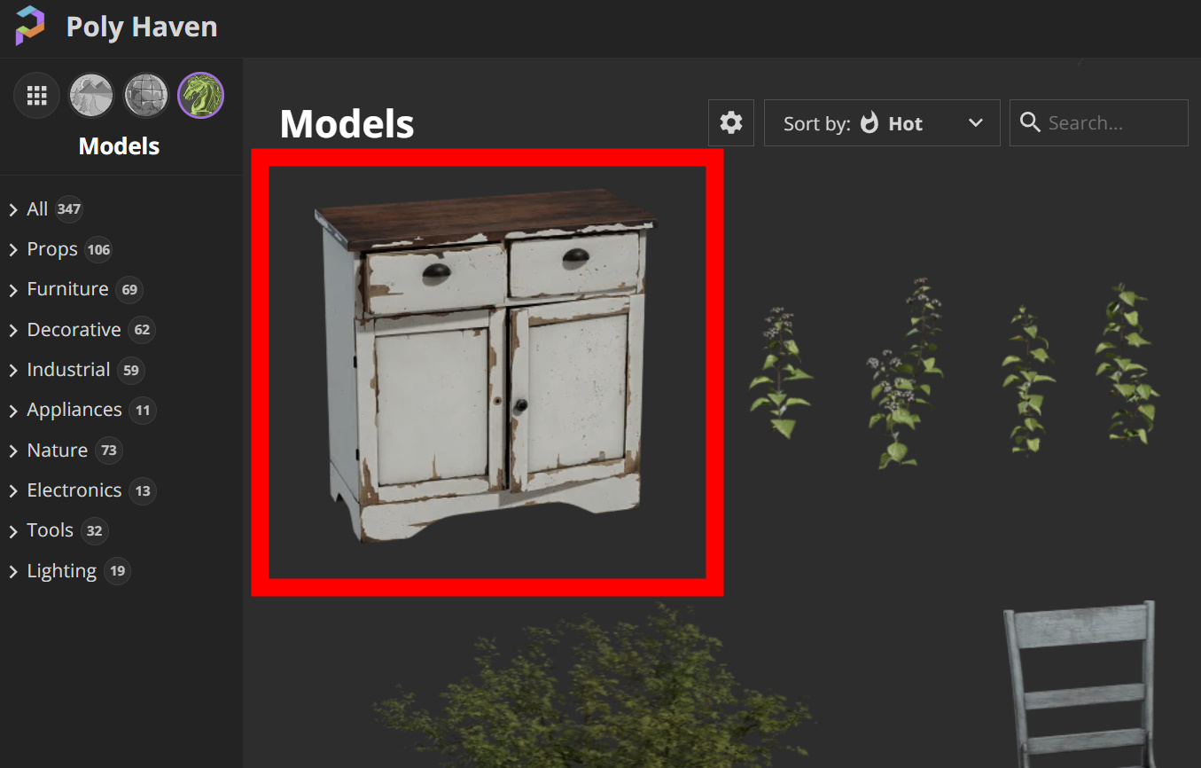 3Dアセットや3Dモデルを無料で配布しているPoly Havenの3Dモデル素材を実際に使ってみます。Poly Havenは無料でありながらクオリティがとても高いのが特徴です。Poly Havenについて詳しく見てみましょう。 Poly Haven https://polyhaven.com/ Poly Havenの読み方は、ポリーヘブン(もしくはヘイブン)でしょうか。Poly Havenは非営利団体で高品質な3Dアセット、テクスチャ、HDRIを無料で提供し、アーティストや業界全体の発展に貢献するというコンセプトのようです。 **何よりも凄い点が、すべてクリエイティブ・コモンズのCC0ライセンスで素材が提供されていることです。
