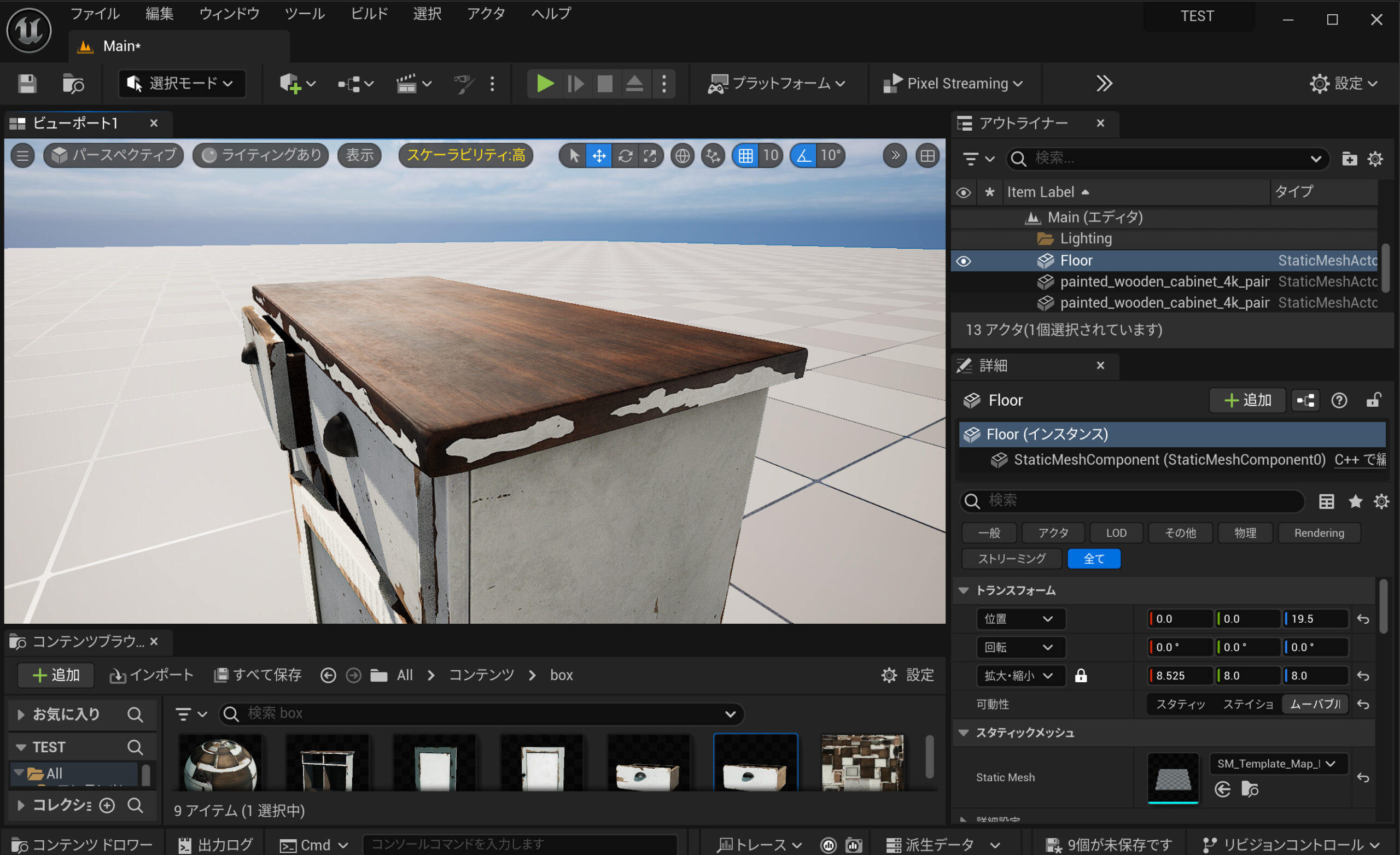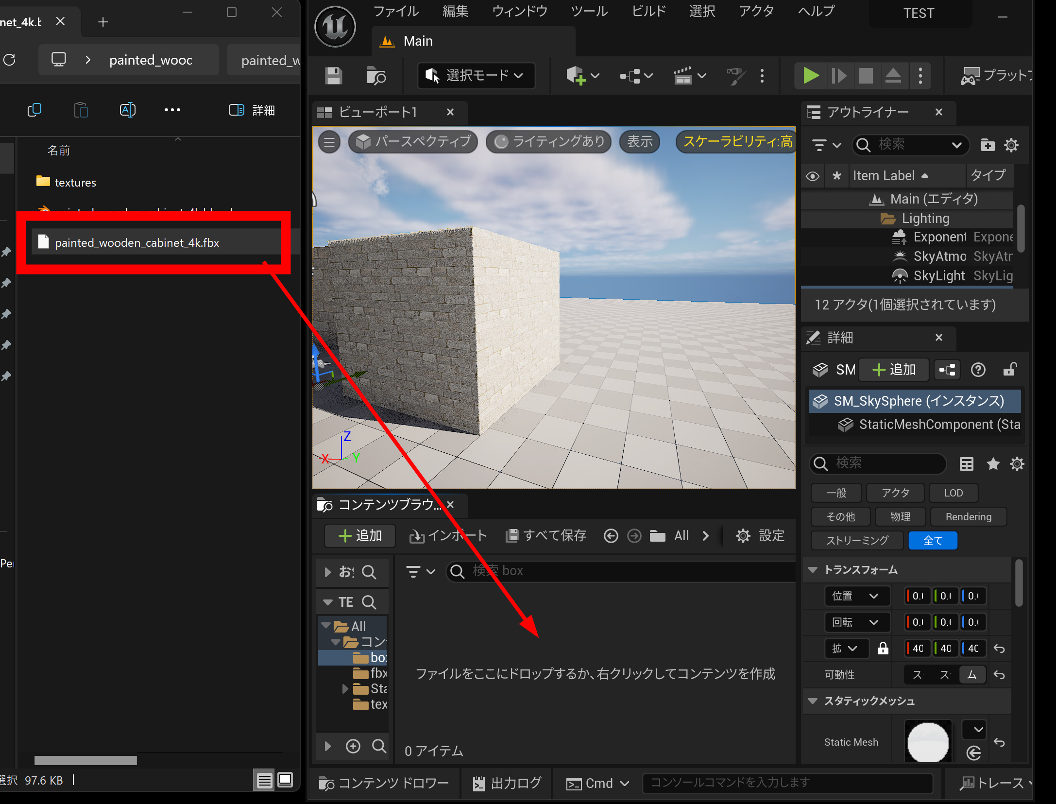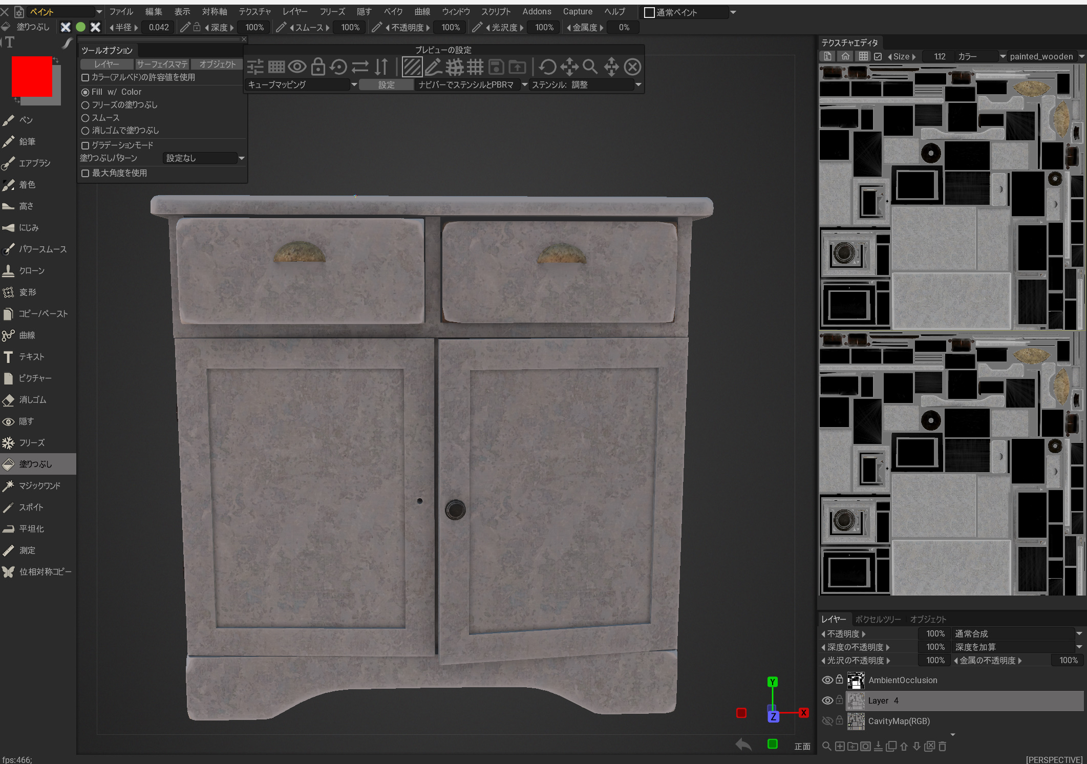 Poly Havenにアクセスして、3Dモデルをクリックします。 まだ3Dアセットの数は少なく347個あるようです。3Dモデルは岩や木、古めの家具などが多いです。低品質な寄せ集めの3Dアセットではなく、それぞれ完璧ともいえる3Dモデルです。いろいろな用途に活用できそうですね。 この3Dモデルをダウンロードしてみましょう。 テクスチャーサイズは4Kです。 ファイルは、Blender形式の中心に複数用意されています。 いろいろなマップもあります。 ダウンロードするとブレンダーのファイルとテクスチャーフォルダが表示されました。 マップは、Diffuseマップ、Normalマップ、Roughnessマップ、metalマップなど。 Blender上で表示してみました。 UE5に取り込むためFBXで書き出します。 FBXでドロップします。 いくつかエラーが出ていますが気にするほどではなさそう。 机のそれぞれのパーツが取り込まれました。このモデルは複数構成でできているようです。 テクスチャーでエラーが出ていました。 テクスチャーファイルを再び取り込み、それぞれのリンク先に接続しました。 UE5でこんな感じ。 位置をすべて0に合わせると、家具がセットの位置に収まりました。 すばらしい3Dモデルです。すばらしい! ちょっとテクスチャーを変更してみましょう。 扉の模様を変更したり。 大理石風に変更したりできます。これもUVマップなどの品質が素晴らしいので、変更も簡単にできそうです。 このような品質を持つ3Dモデルがすべて無制限で無料という素晴らしい結果でした。