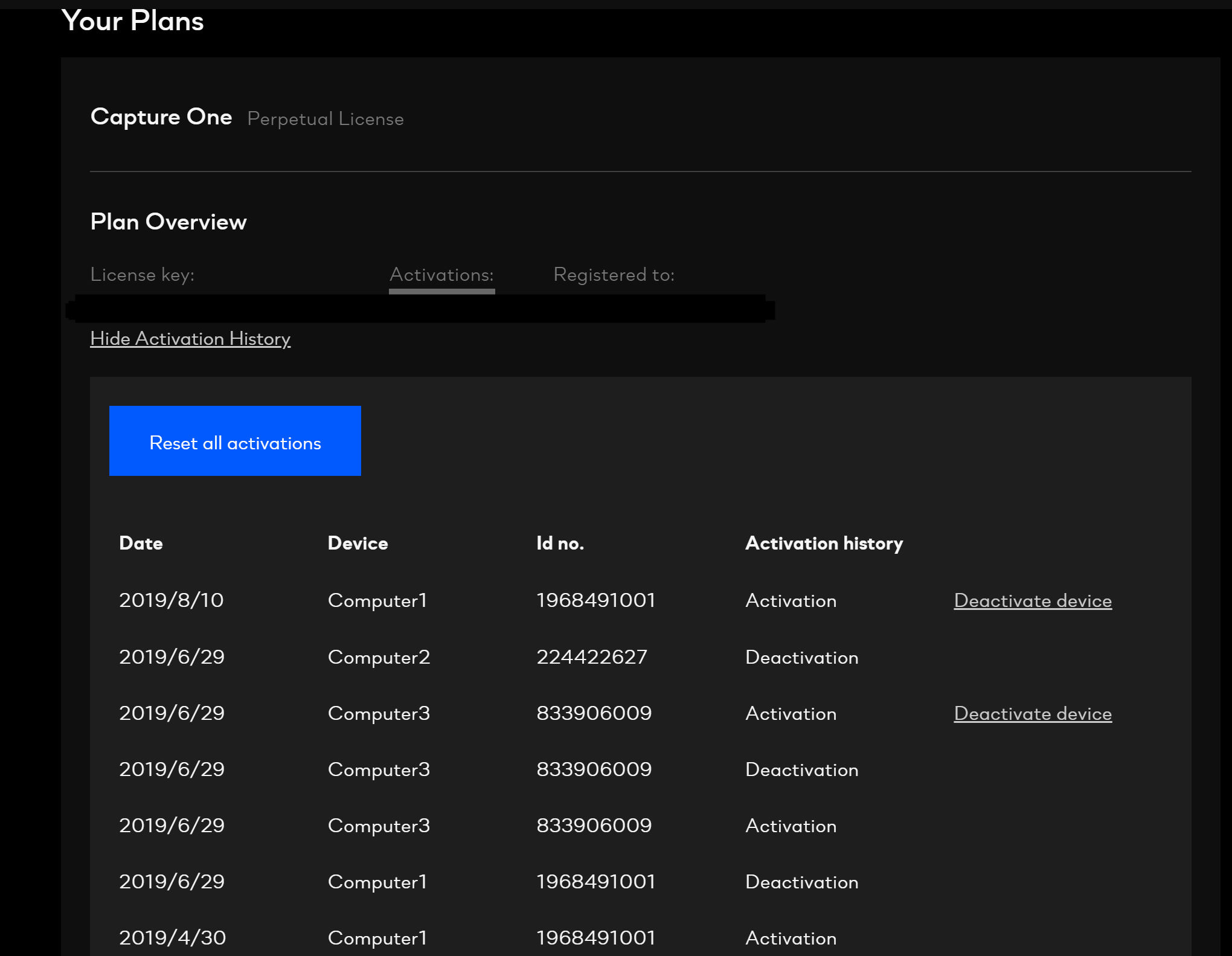 しかしライセンスが他のPCで使用されていて使えないという警告が出てきました。なんてことでしょう。再びWebサイトへログインしてYour Plansをチェックするとディアクティブできることがわかりました。5年ぶりの起動です。ログインやパス、ライセンスーキーなどを保存しておいてよかったです。