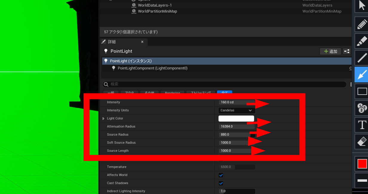 緑の光が届かなくなりました。オブジェクトが黒くなりました。背景が緑なのに、もう緑の光は届かないのです。