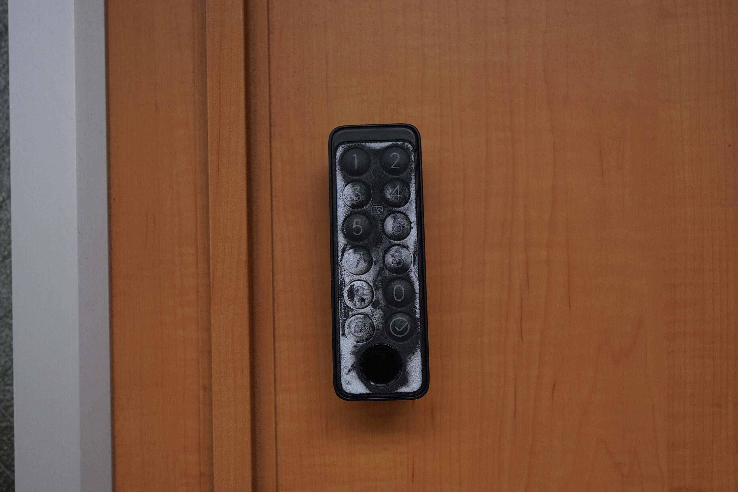 ドアの外側にワイヤレスのSwitchBot指紋認証パットを設置します。ちなみにこちらの電池は約2年間もつそうです。