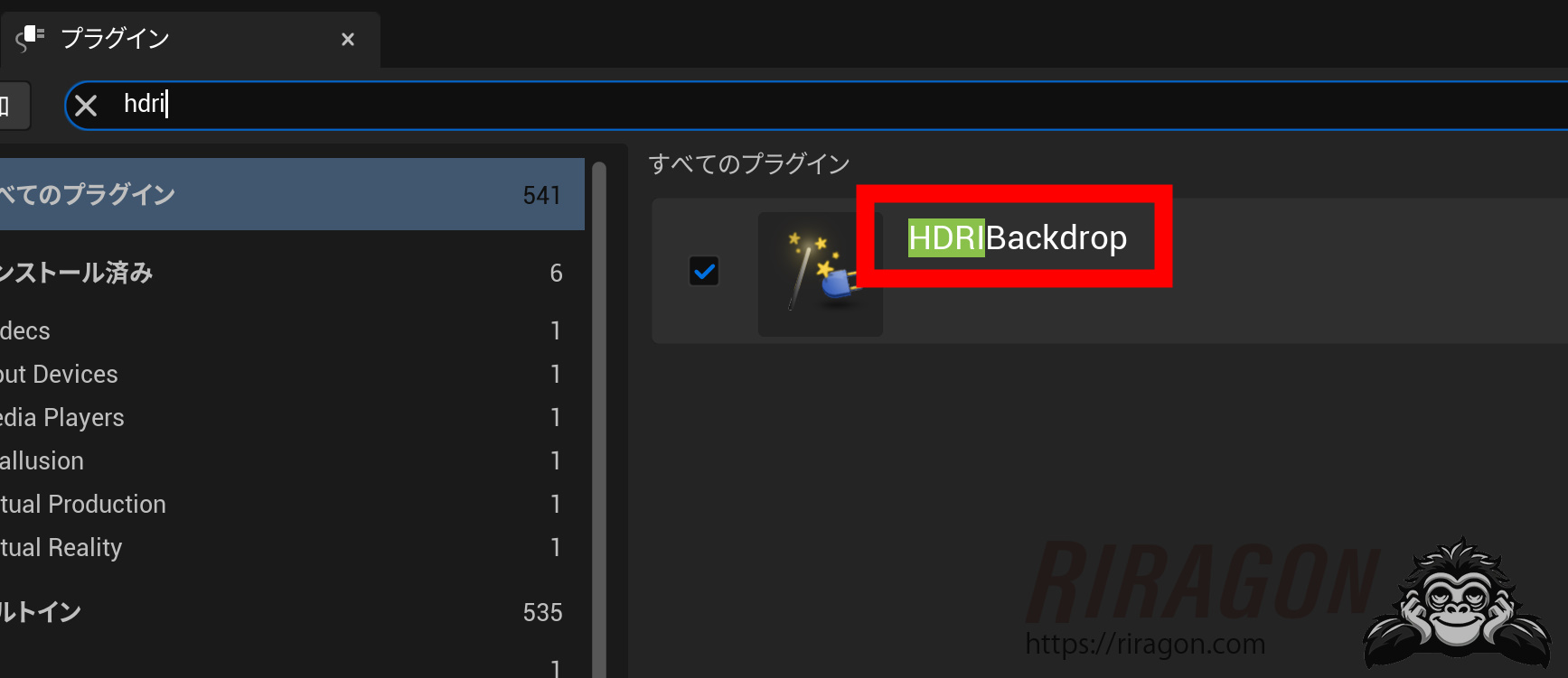 プラグインからHDRIBackdropが有効になっている確認しましょう。