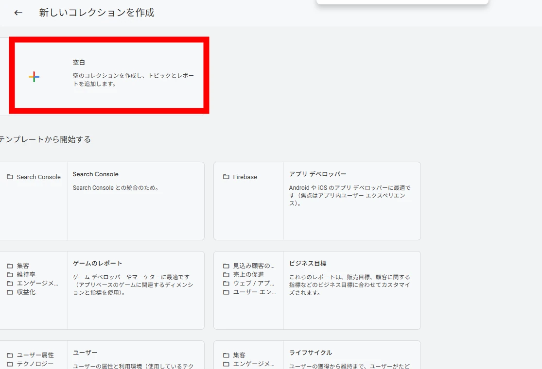 すっきりした画面になりました。新しいコレクションを作成します。この「コレクション」で選んだ設定が、レポートのメニューに出てきます。これが分かりにくい原因です。