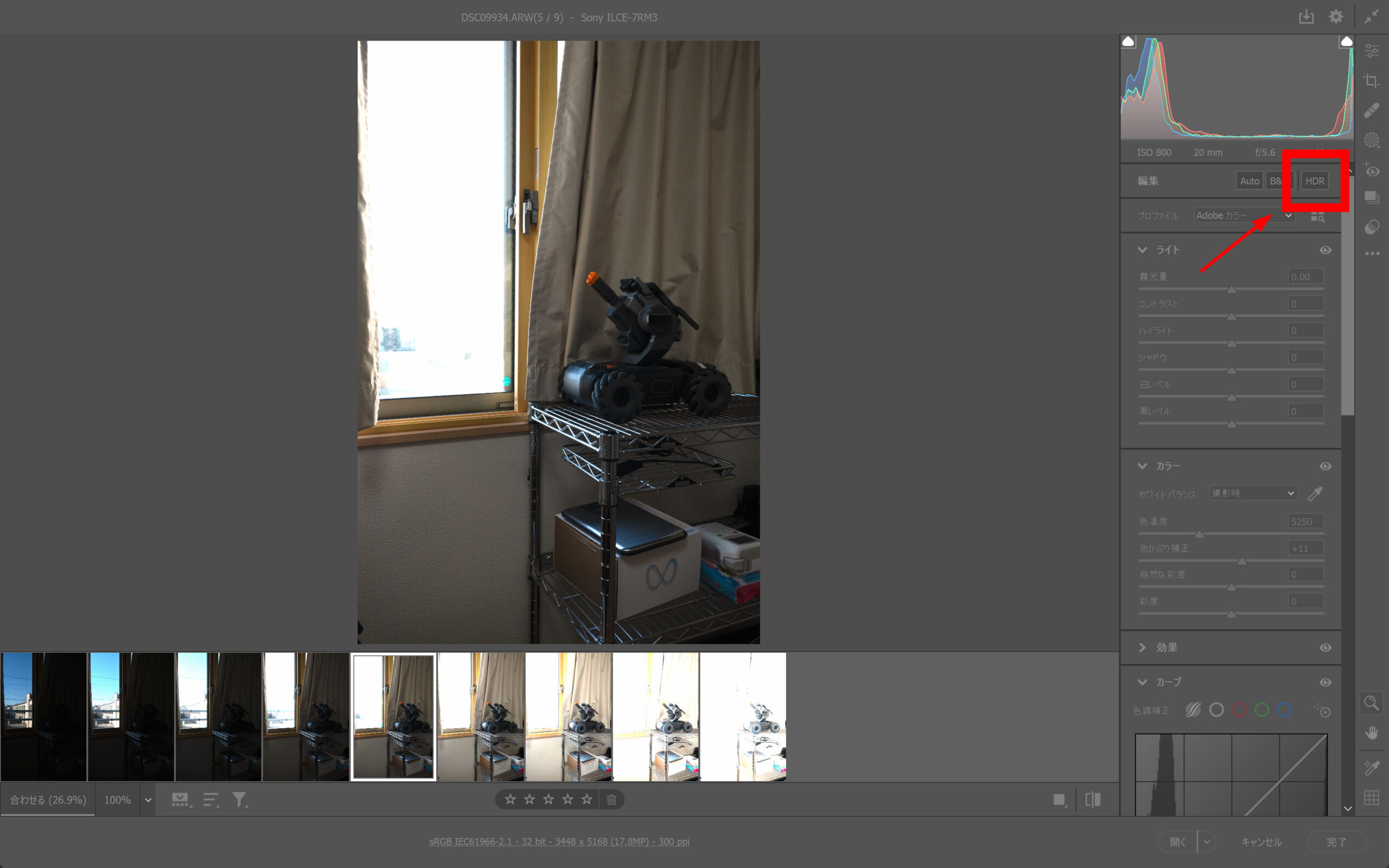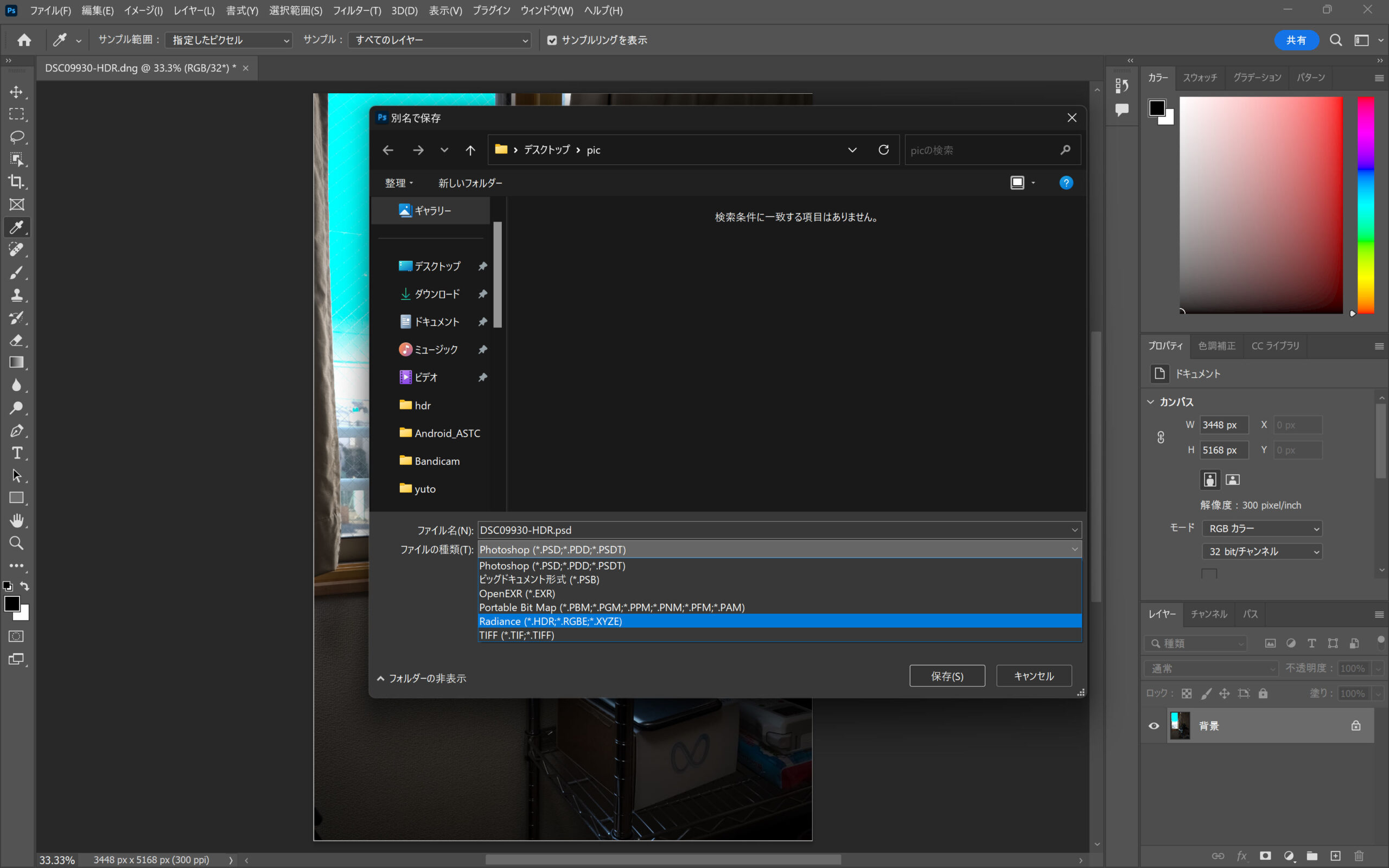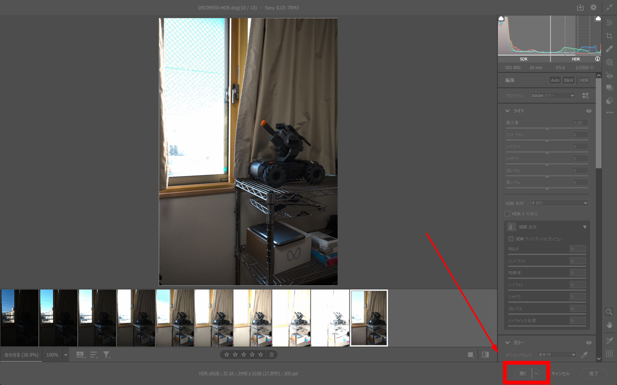画面を統合したりすると、hdr形式で書き出せます。DNGで書き出してもよいでしょうし用途に合わせて書き出すのがよいでしょう。