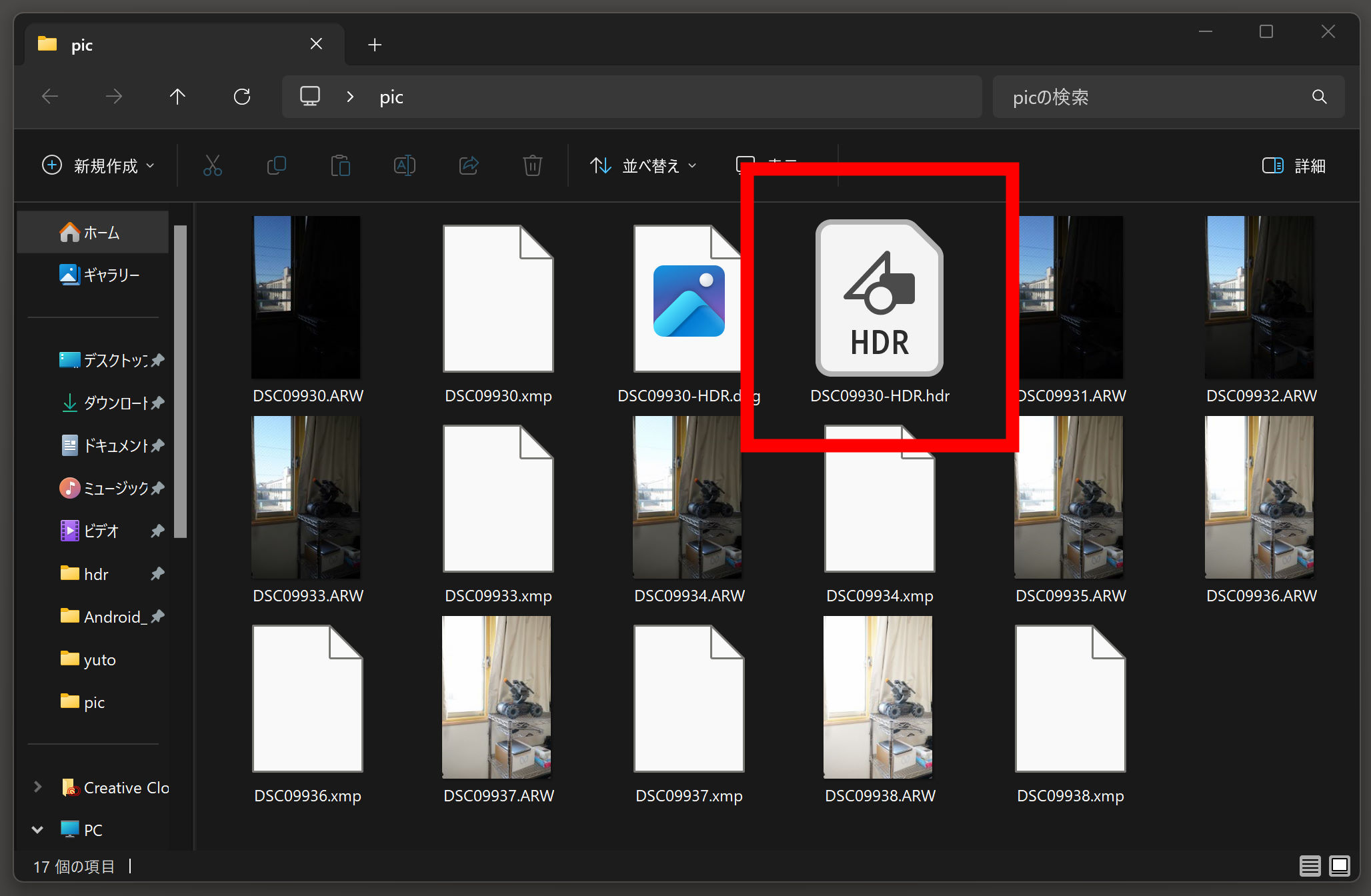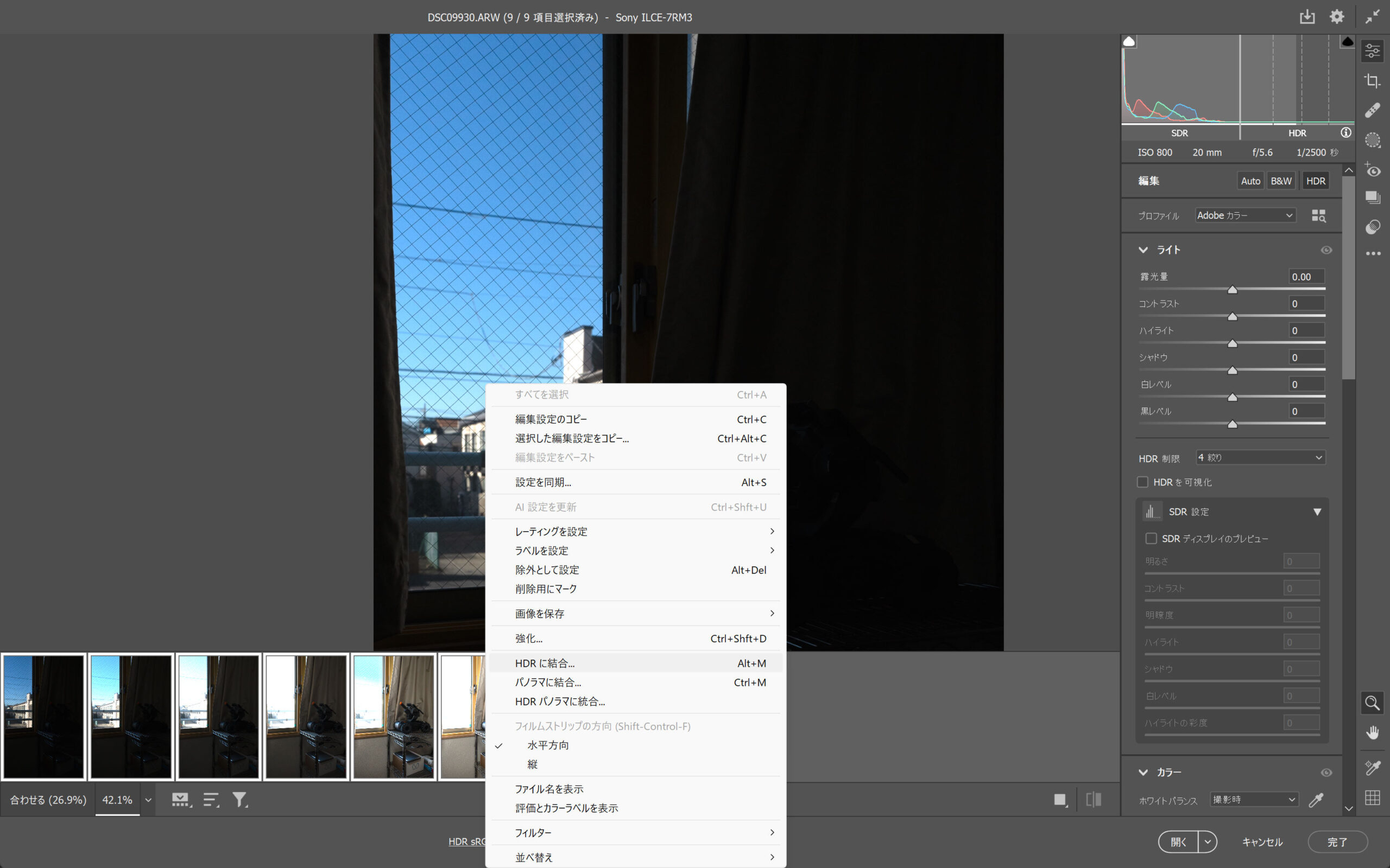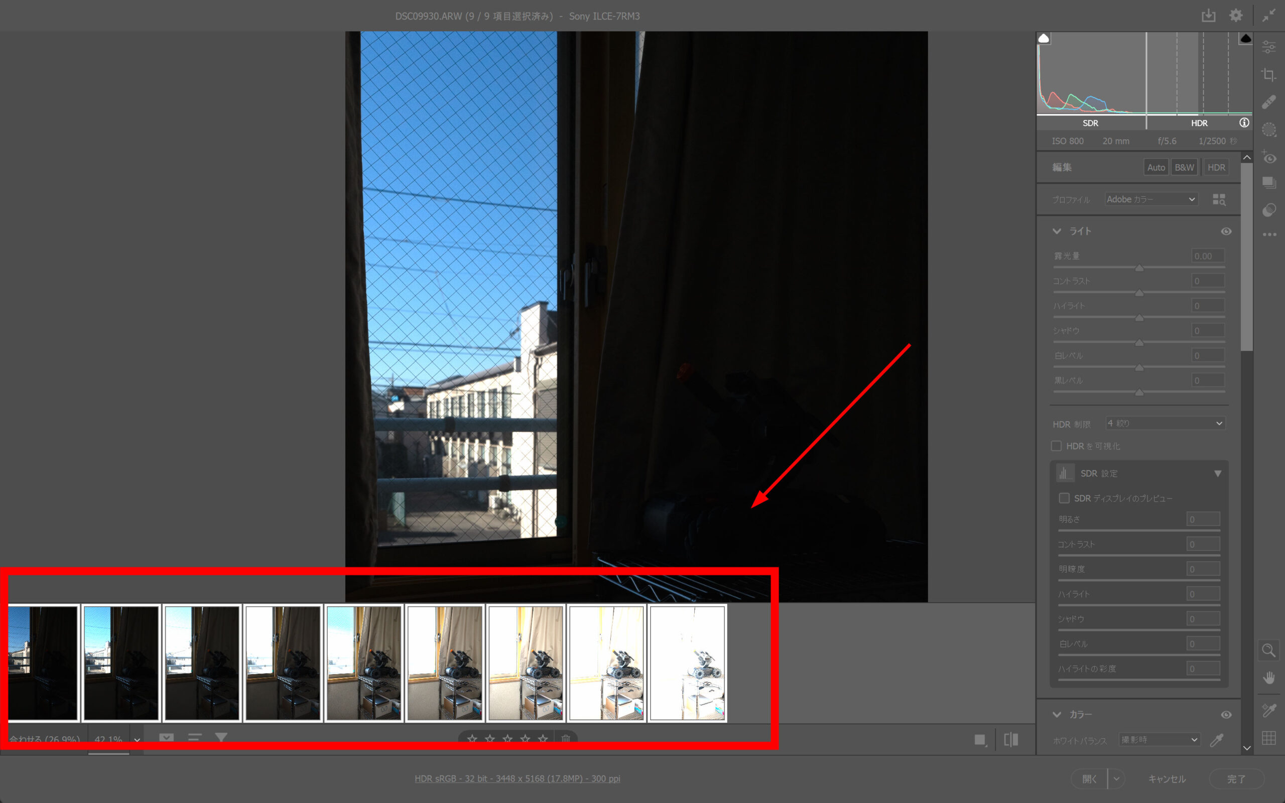 画面を統合したりすると、hdr形式で書き出せます。DNGで書き出してもよいでしょうし用途に合わせて書き出すのがよいでしょう。