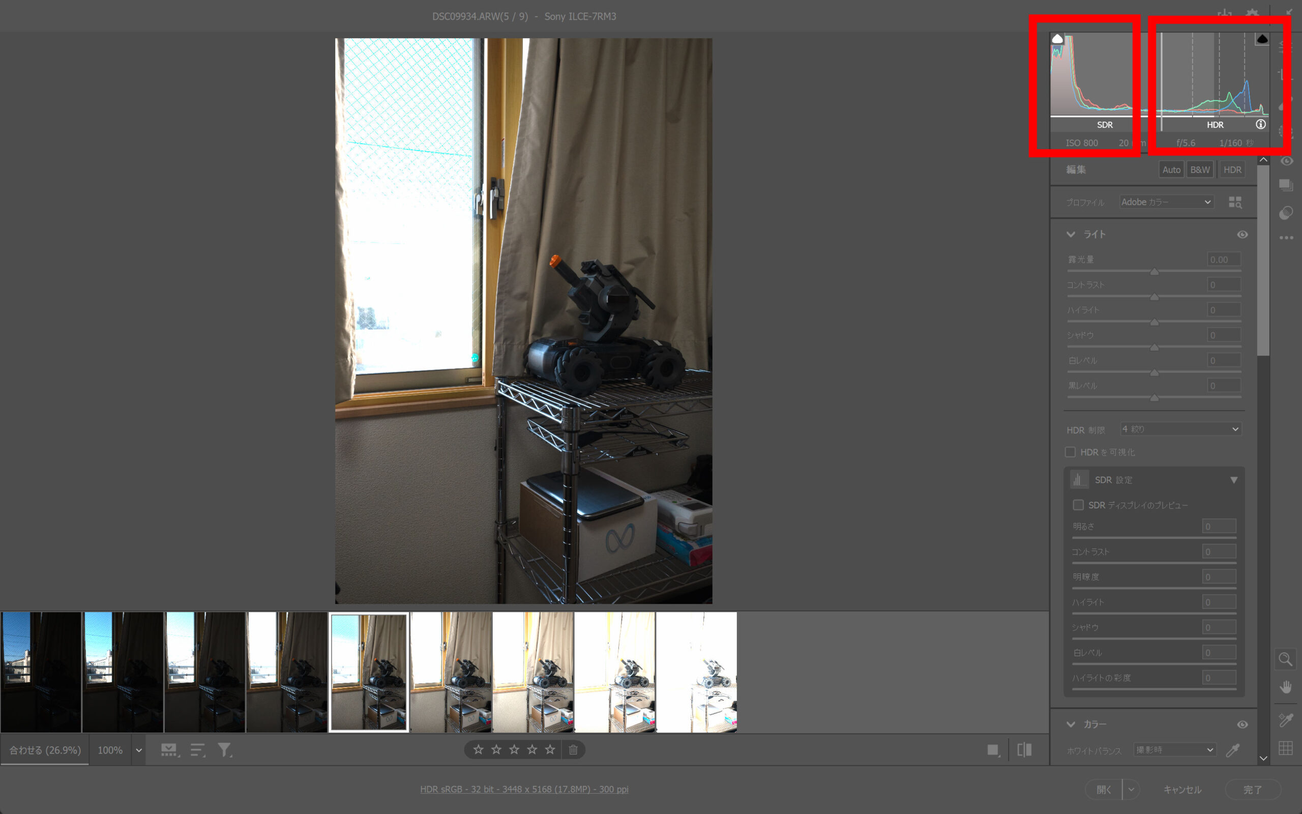 HDR風ではなく、HDRでちゃんと幅広いダイナミックレンジをもつ情報ができました。