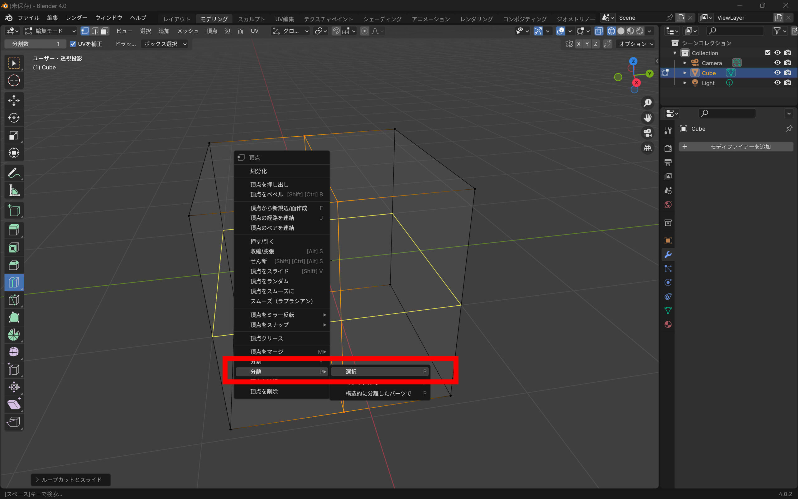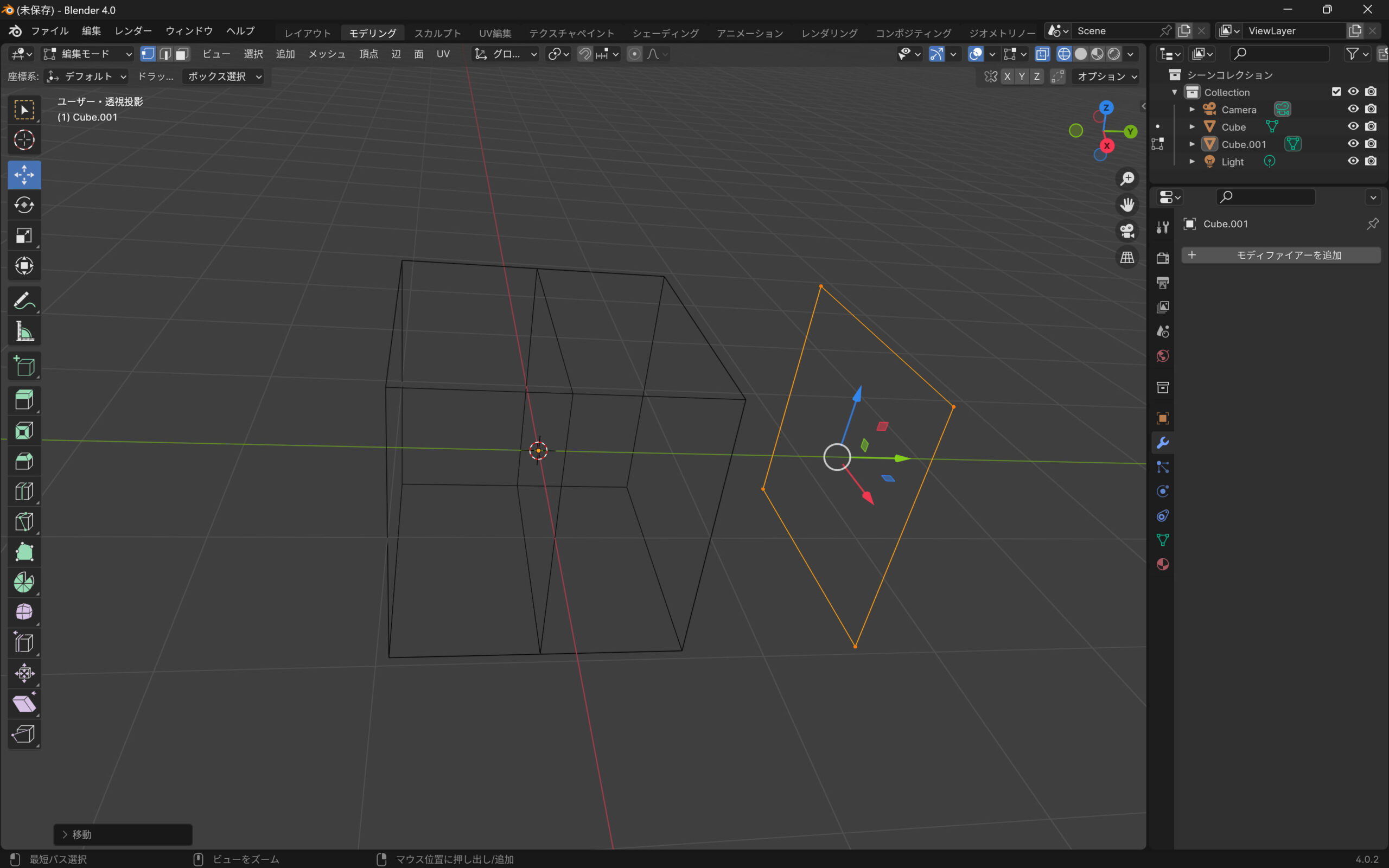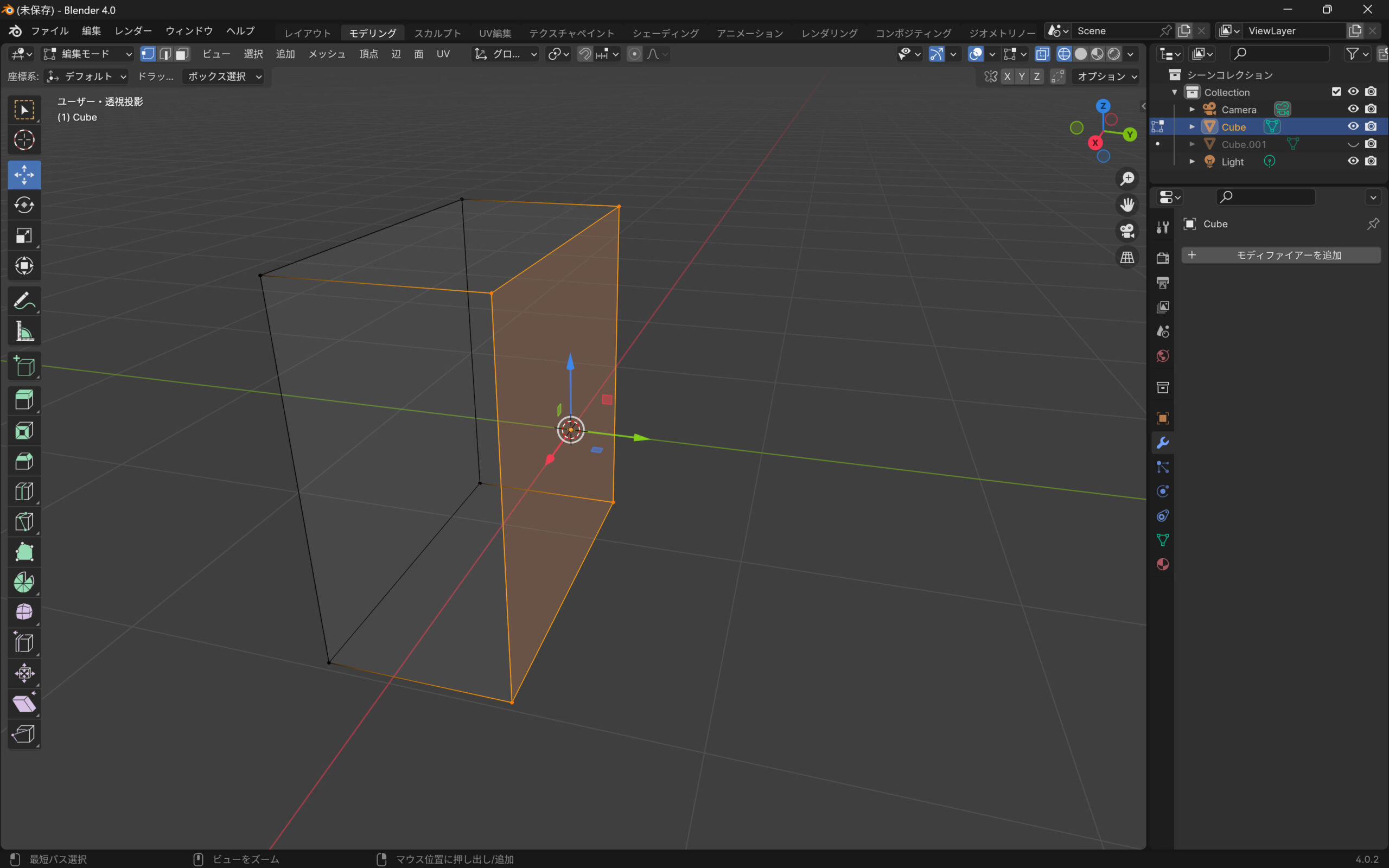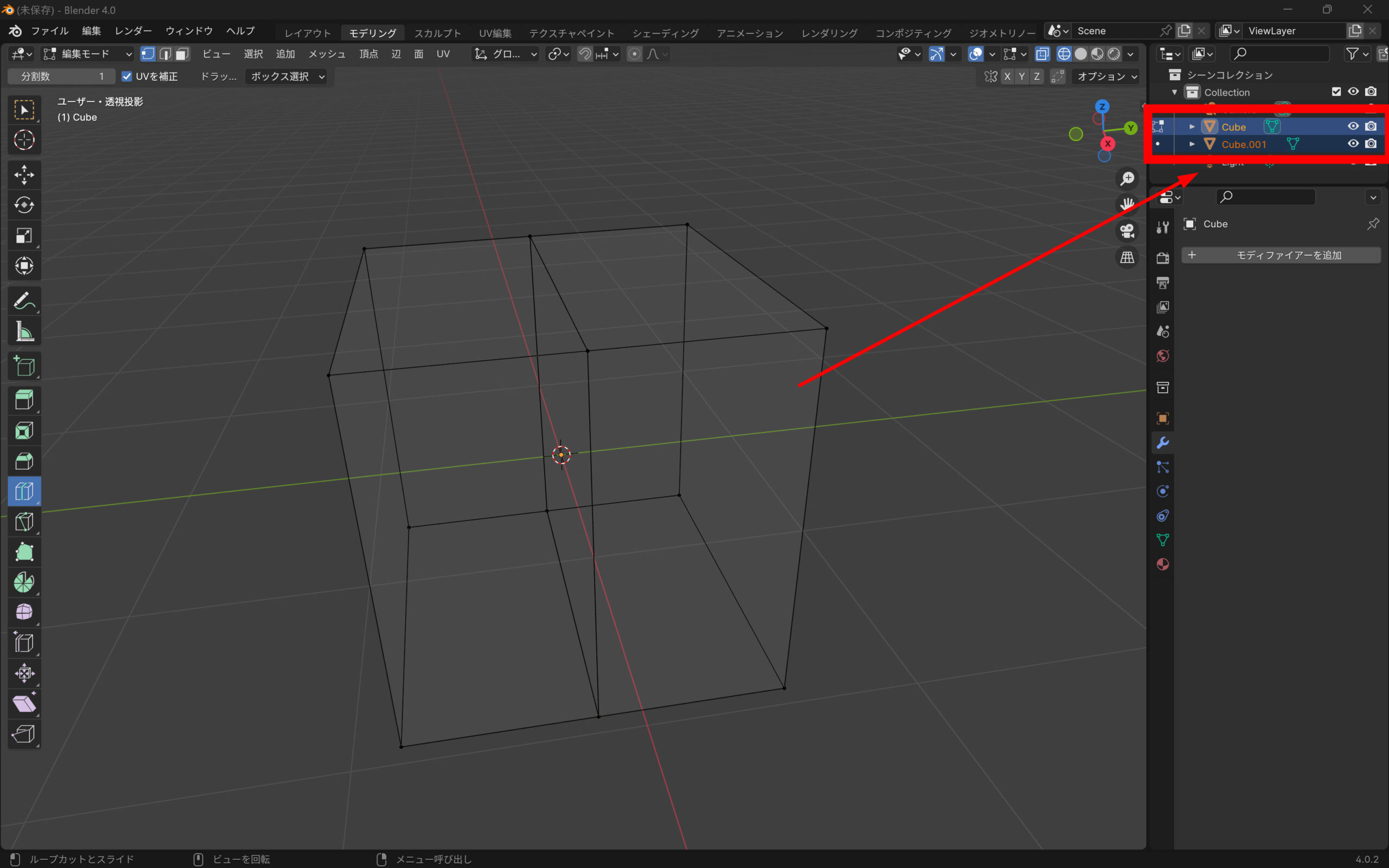 Blenderでキューブを2分割