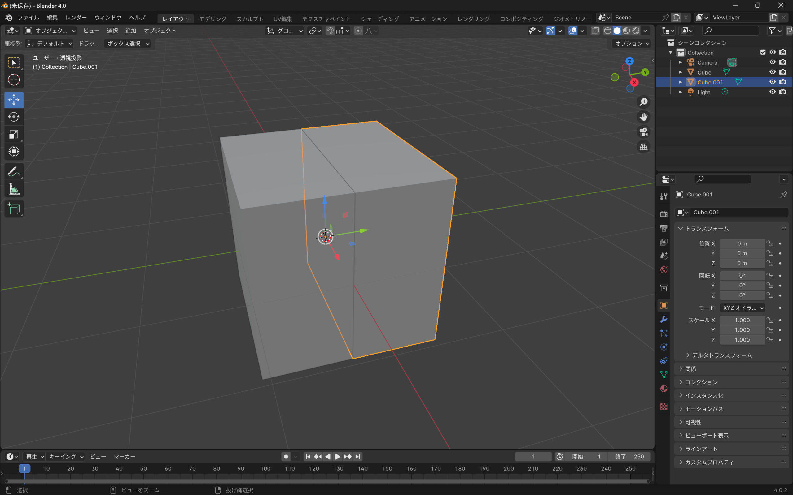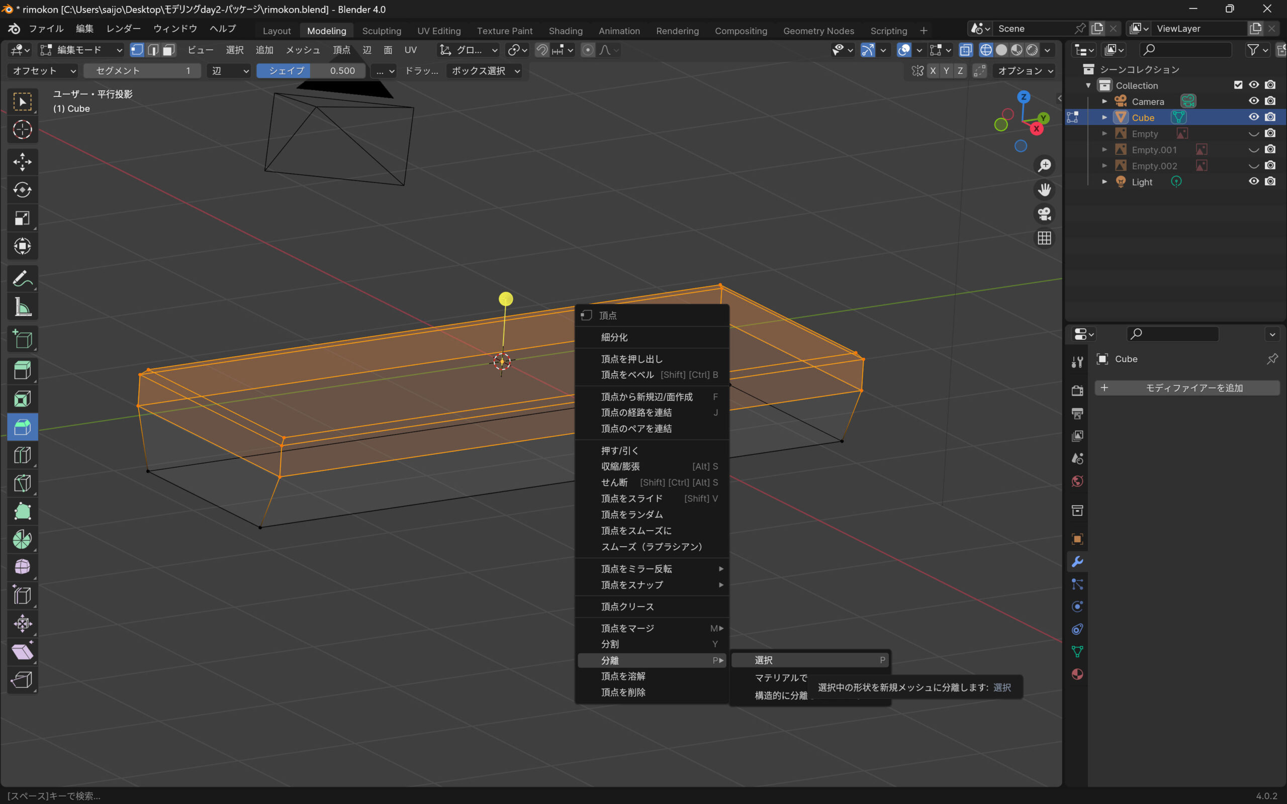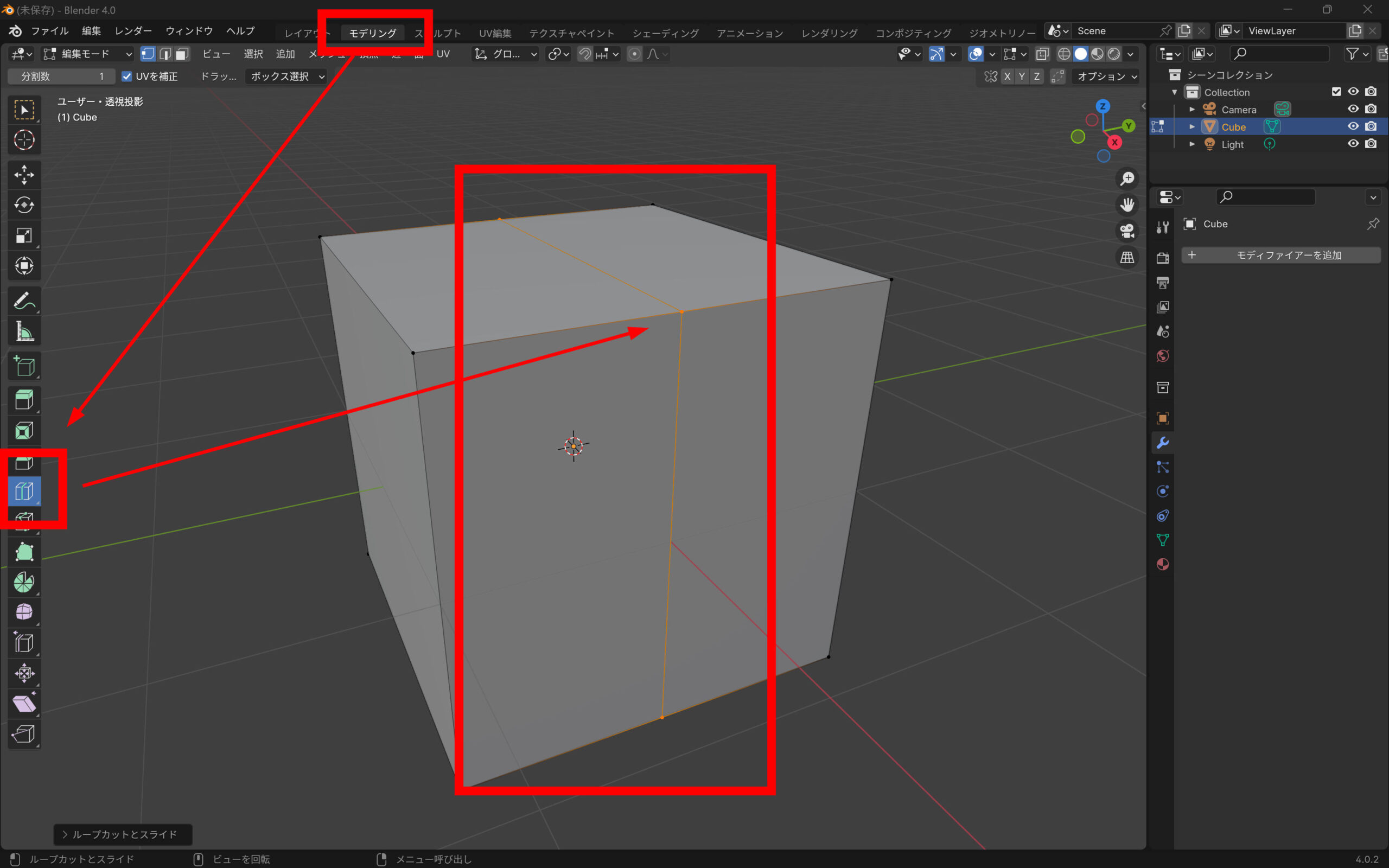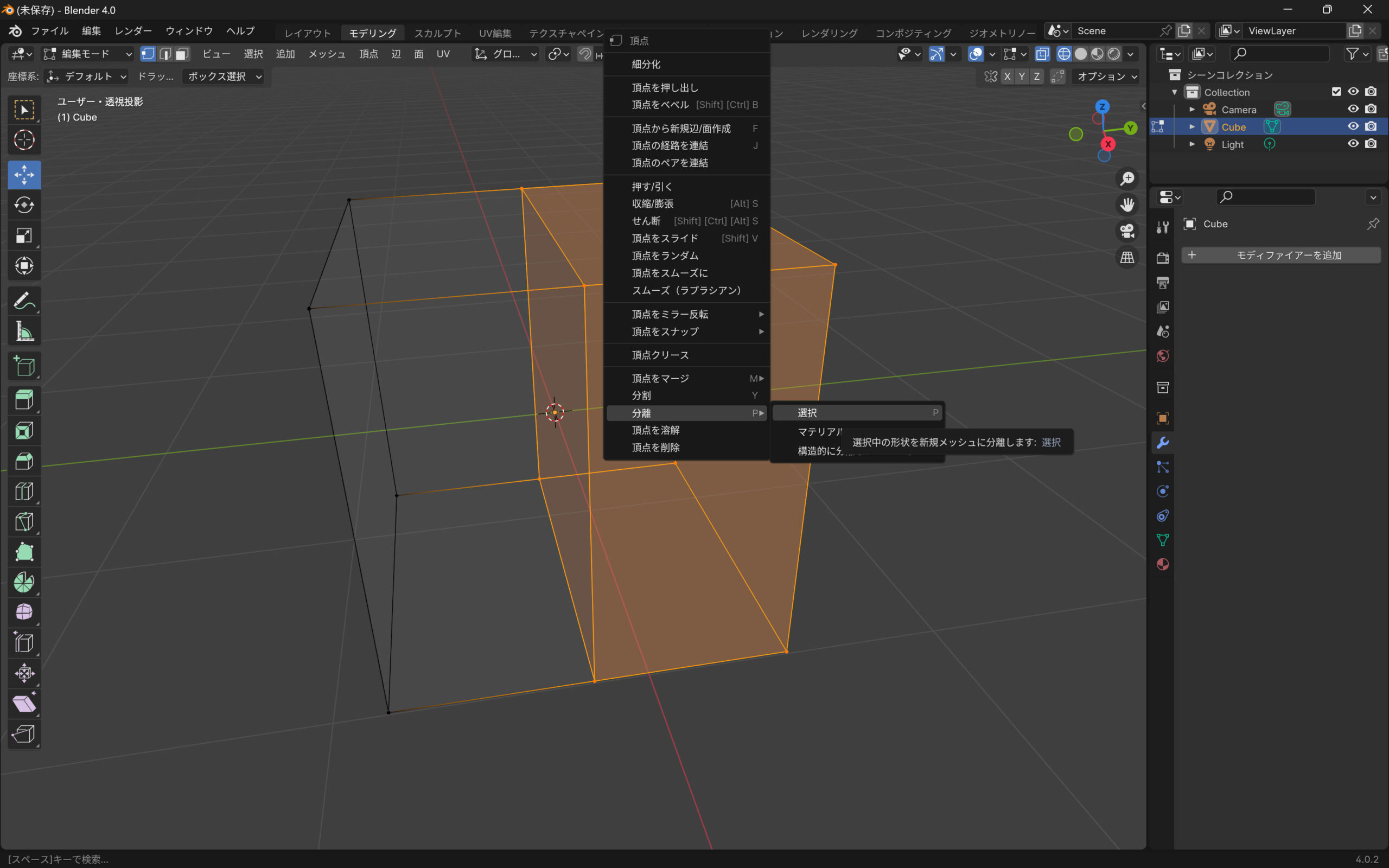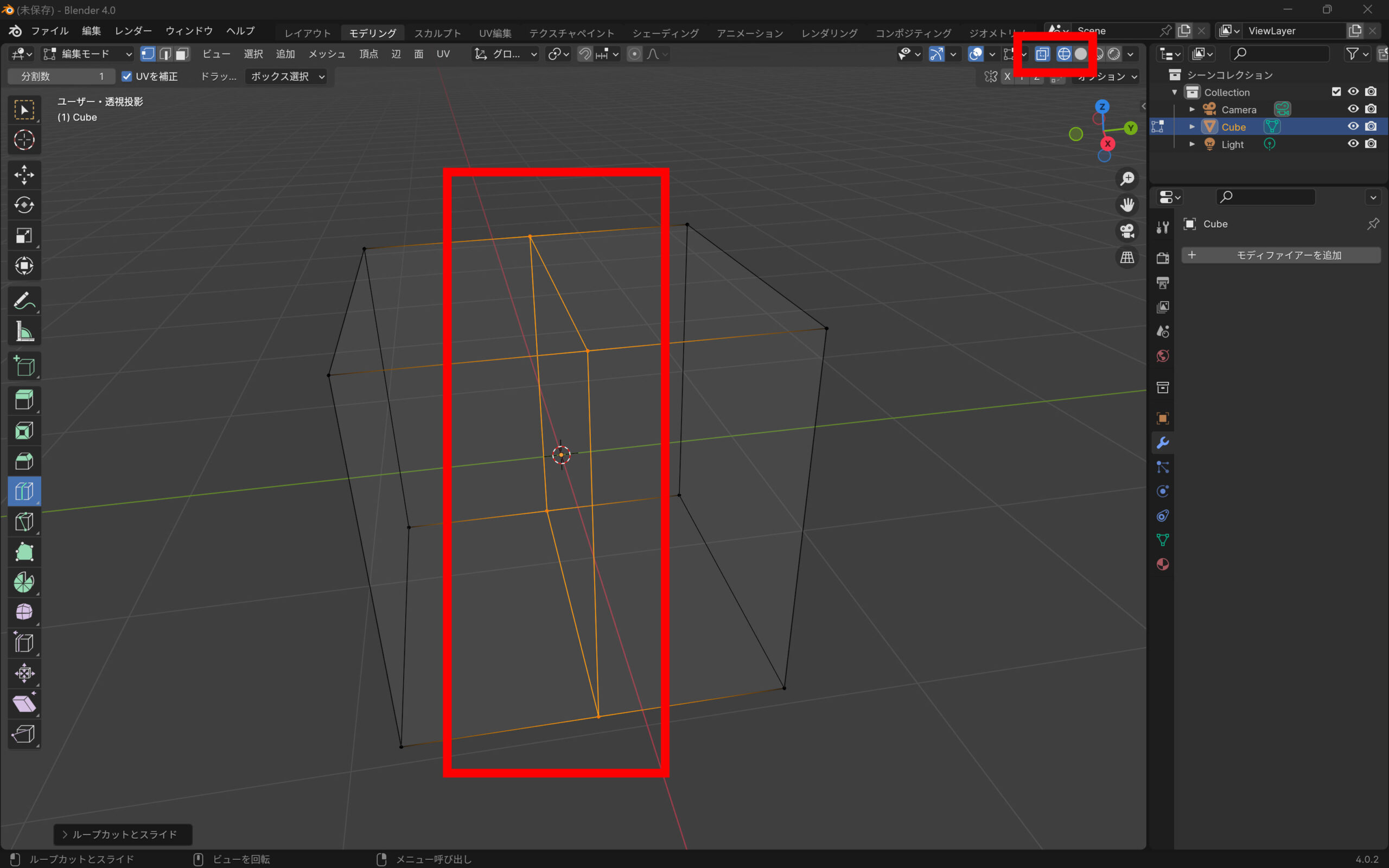 Blenderでキューブを2分割