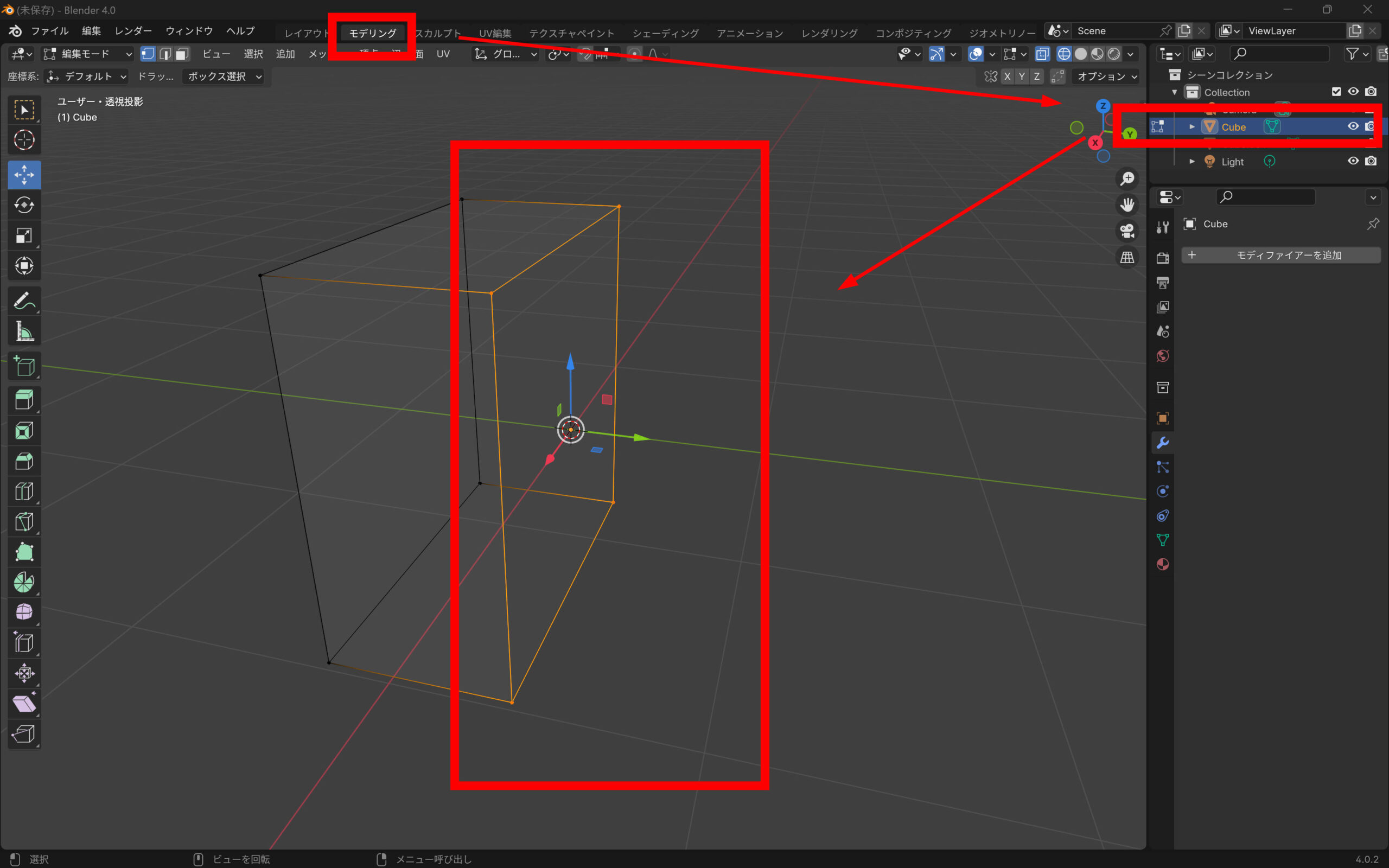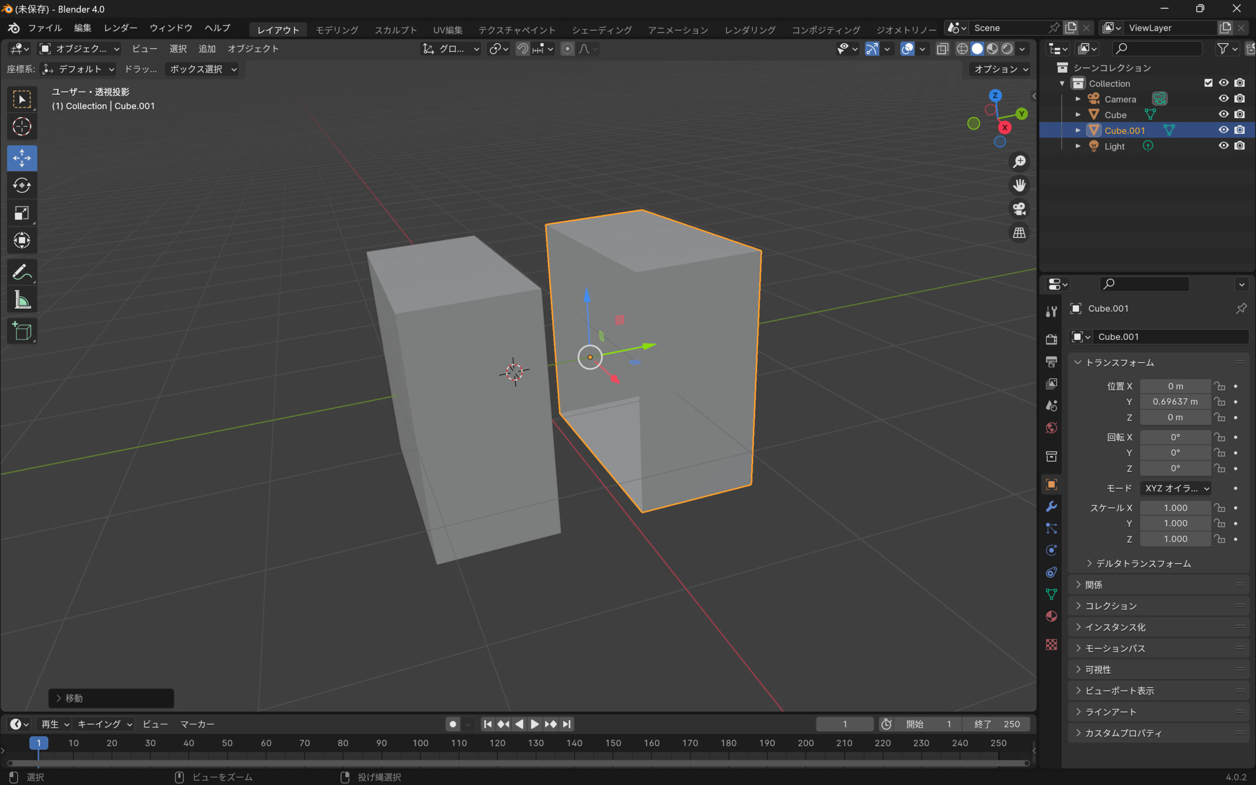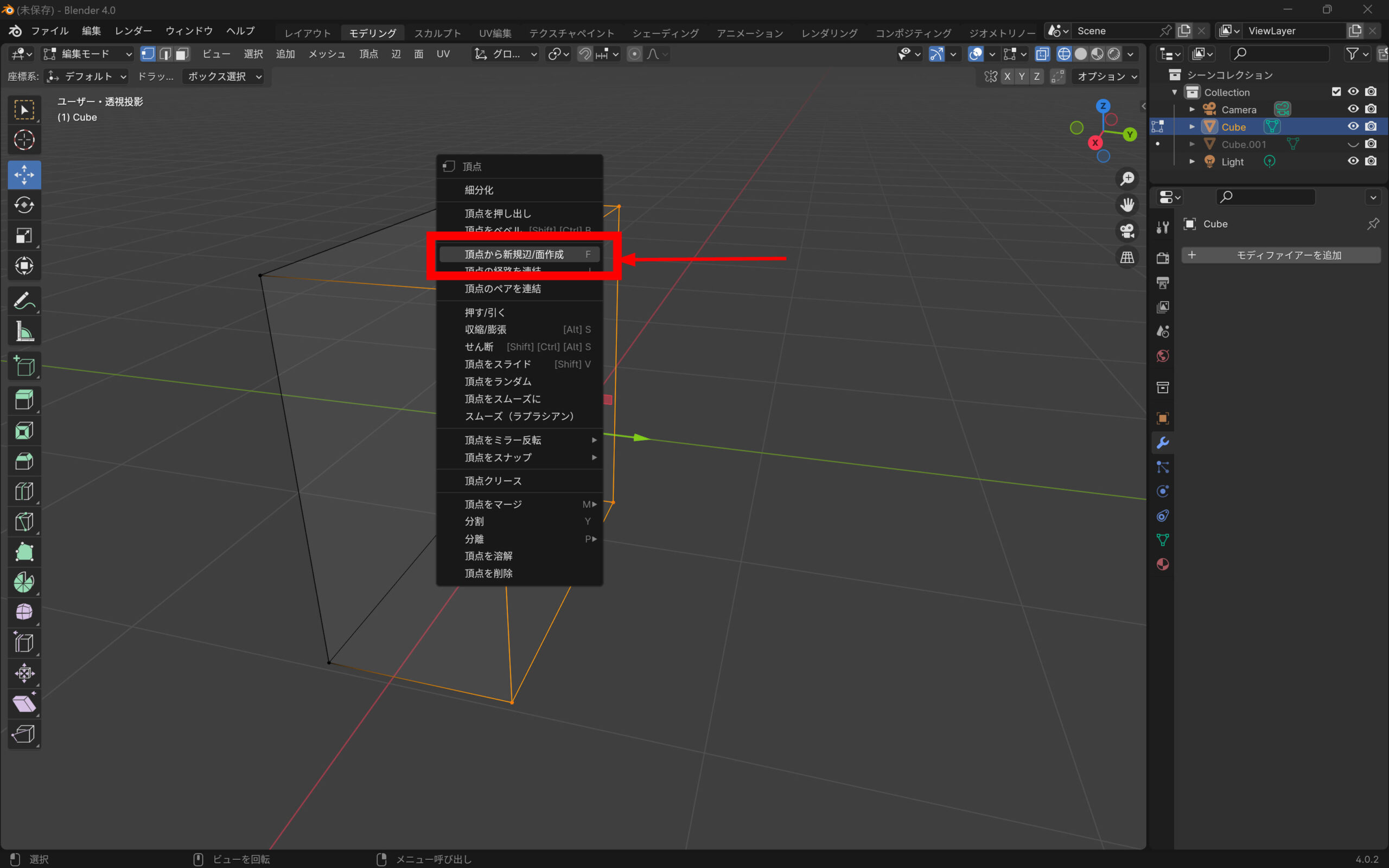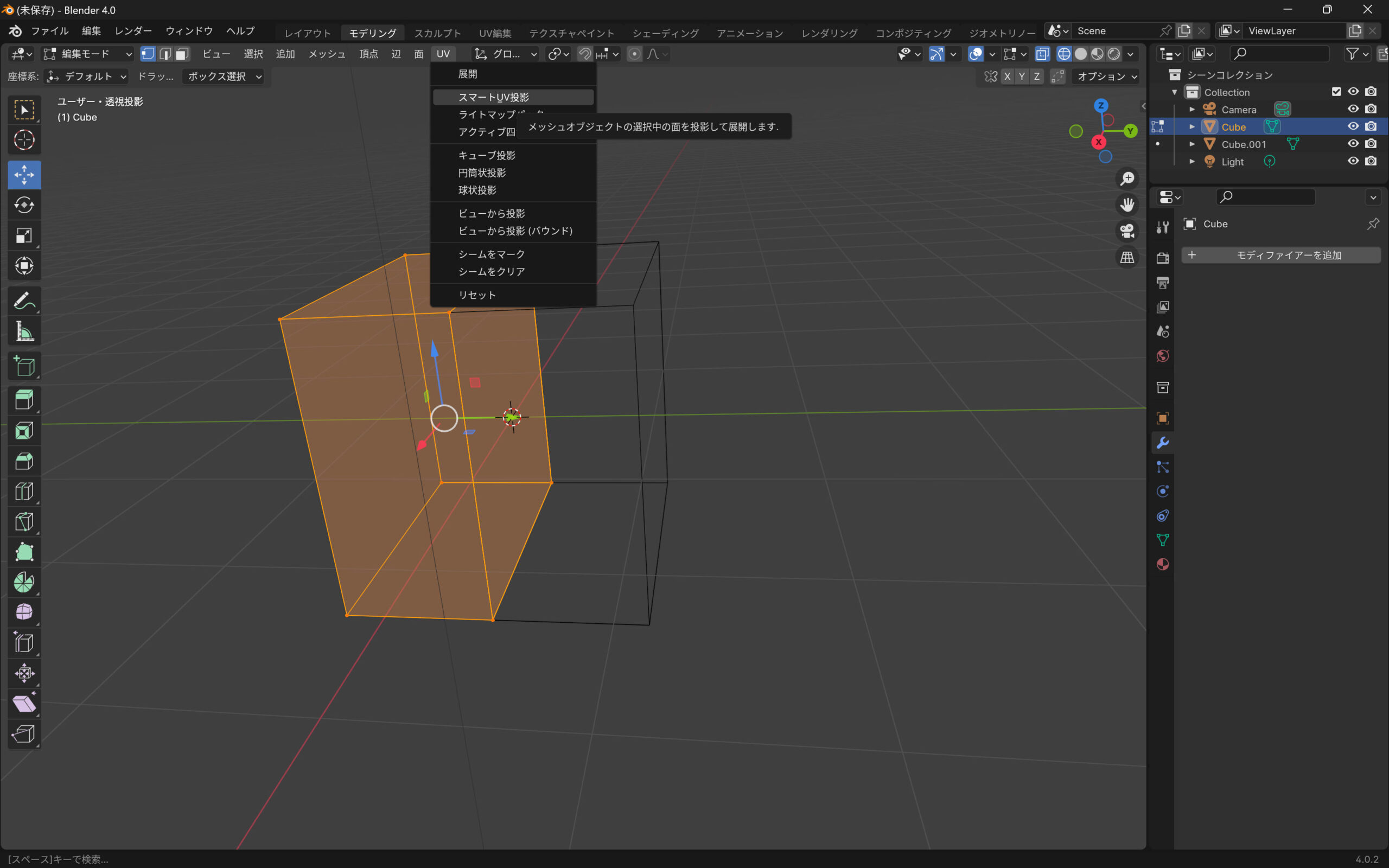 Blenderでキューブを2分割