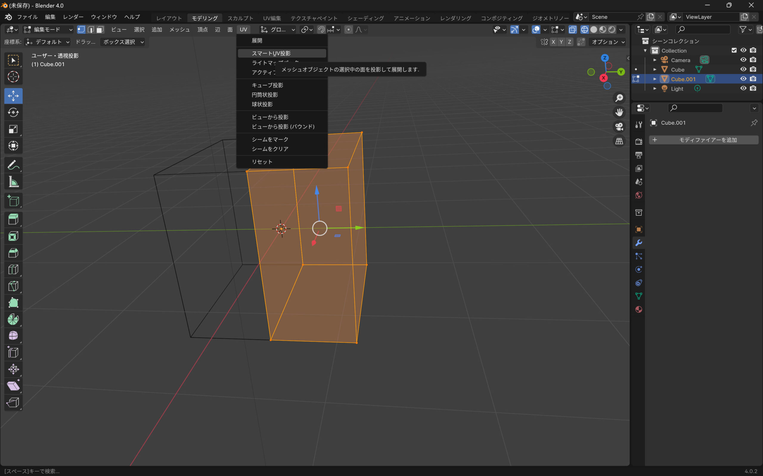 スマートUV投影を選択します。