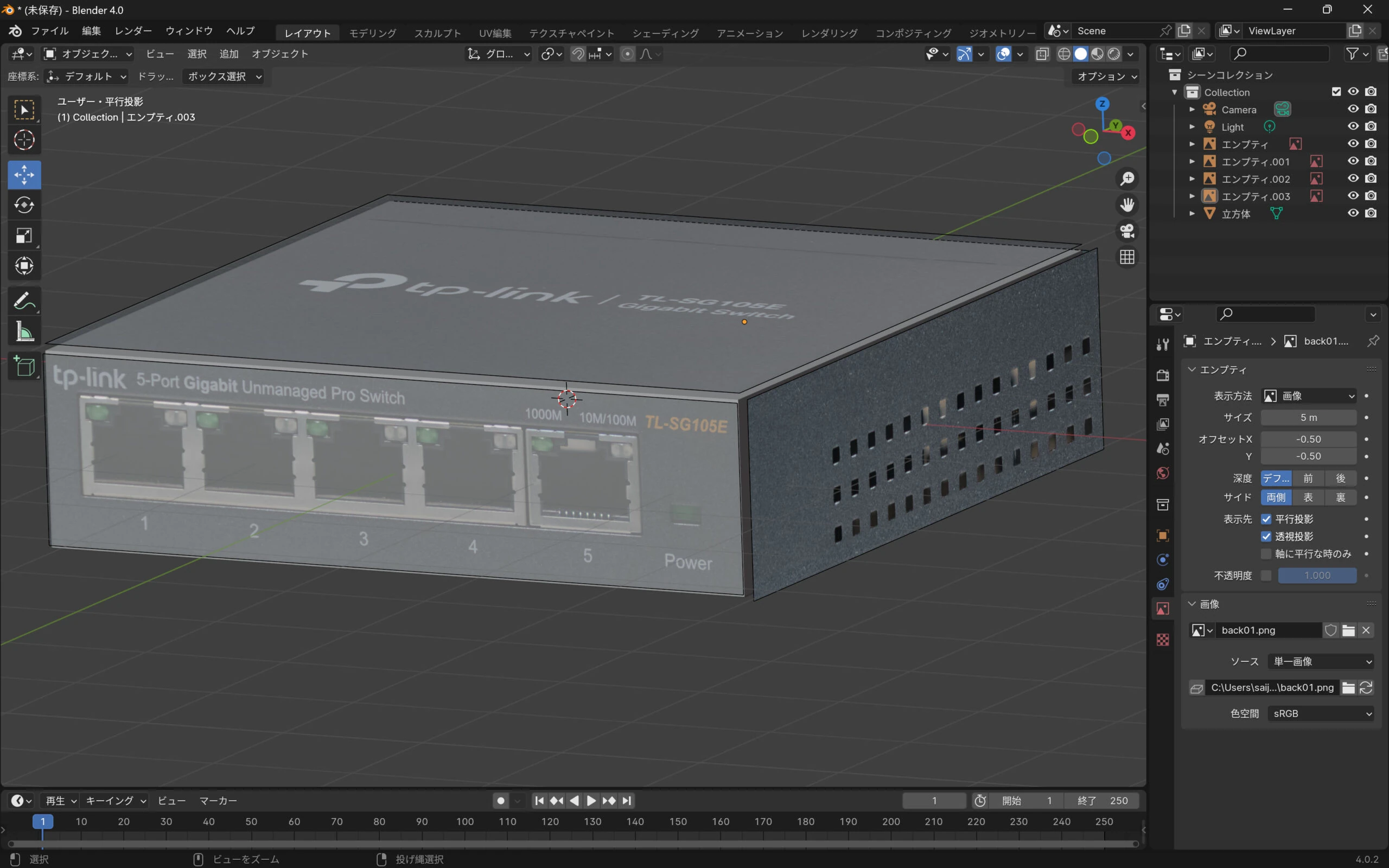 3Dcoatにモデルを移動します。そしてコネクタ部分の写真を貼り付けます。