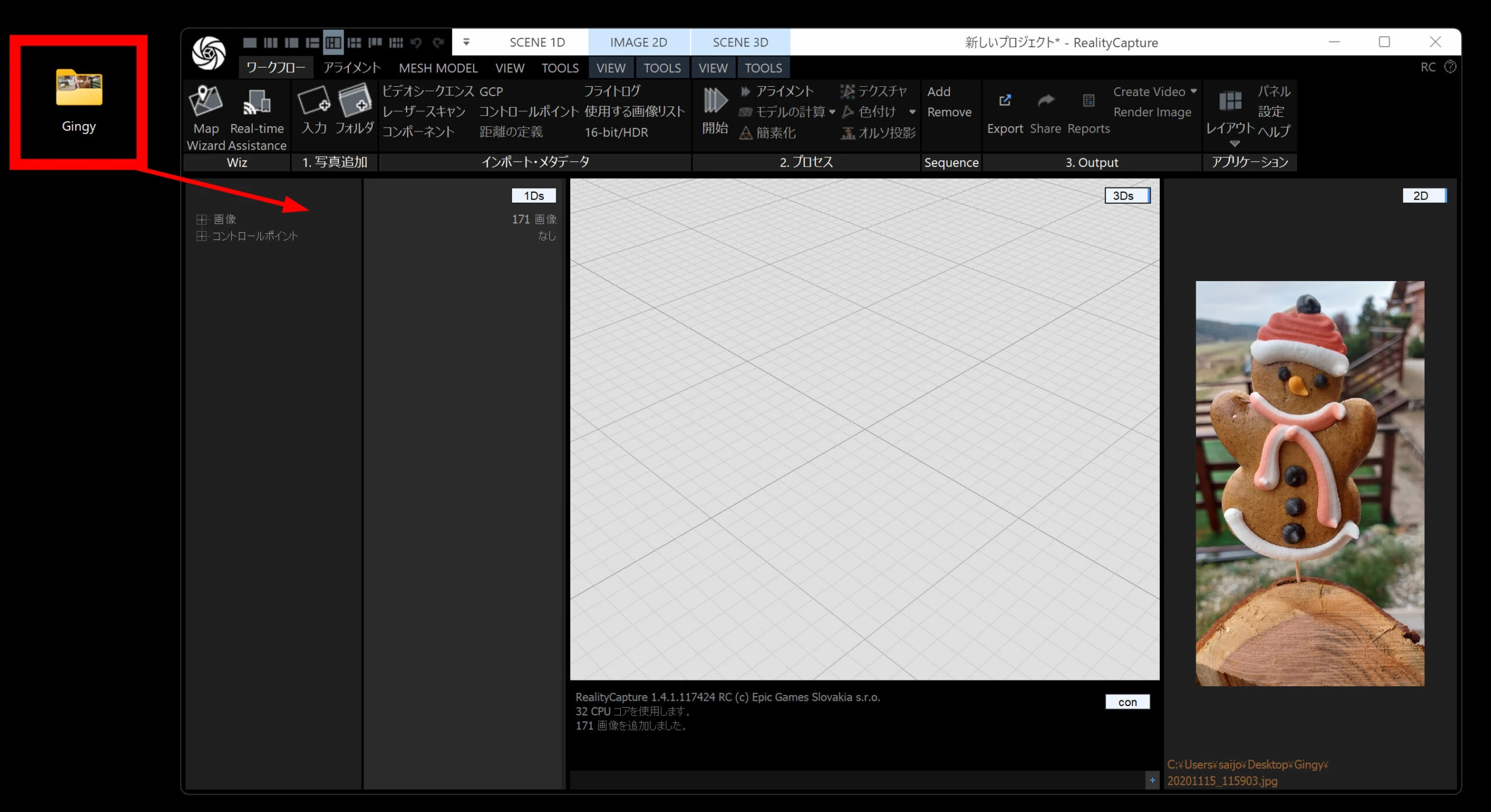 写真を RealityScan に ドラッグ&ドロップ で読み込みます。