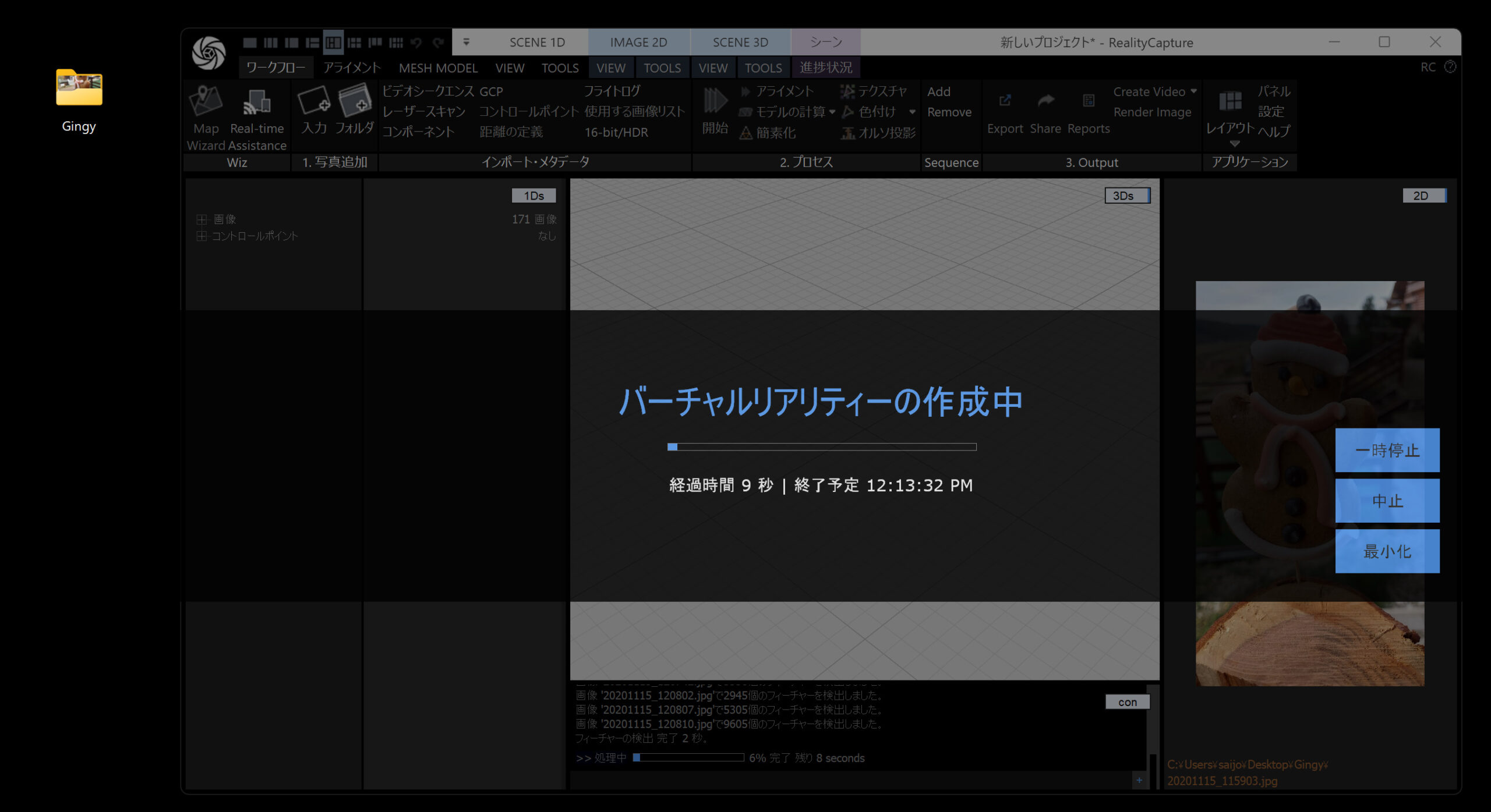 たったこれだけでフォトグラメトリの結果が出ます。3D モデルができ、自由に回転できるので、ちょっとした感動があるはずです。