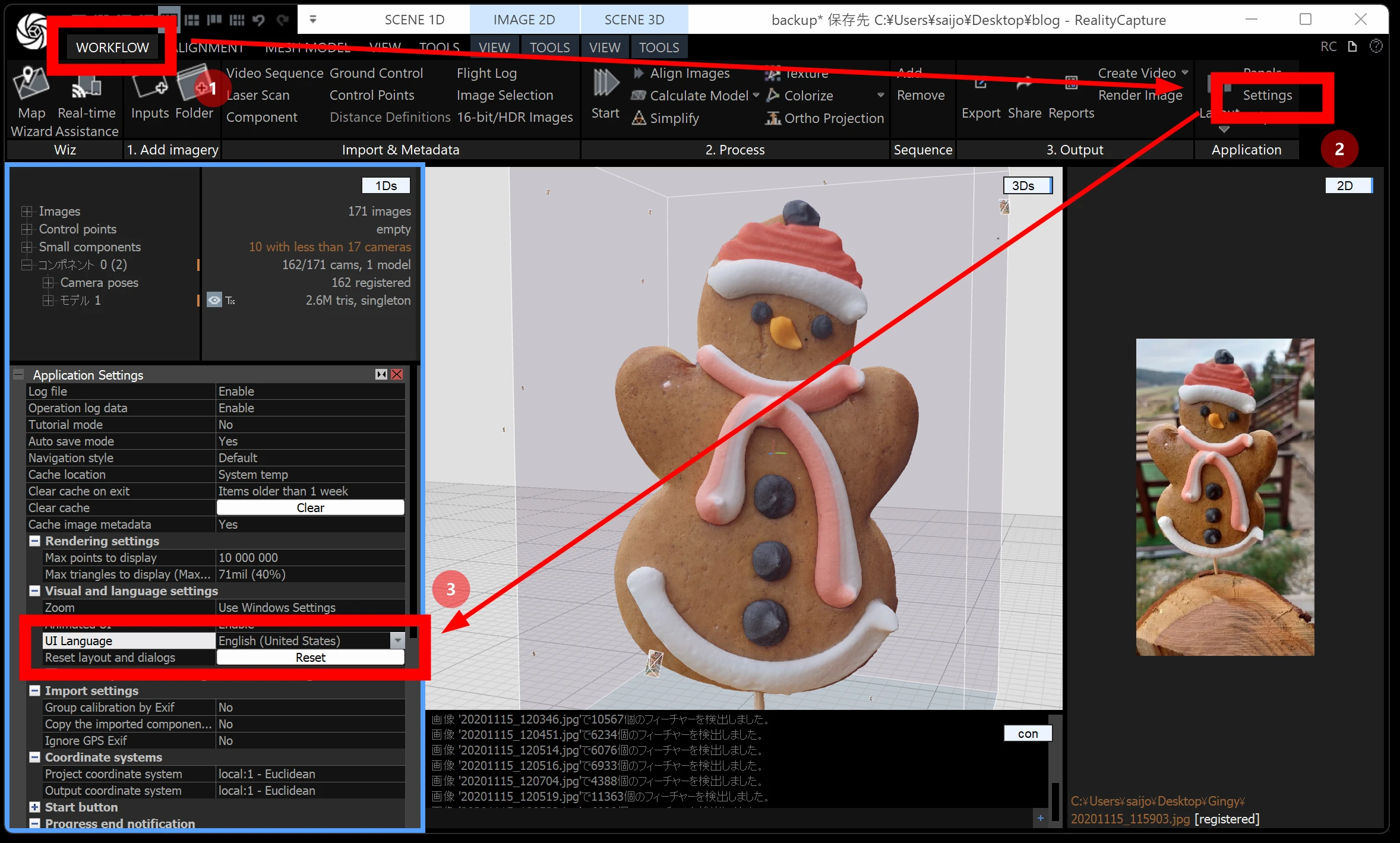 WORKFLOW → Settings → UI Language で「日本」に変更できます。