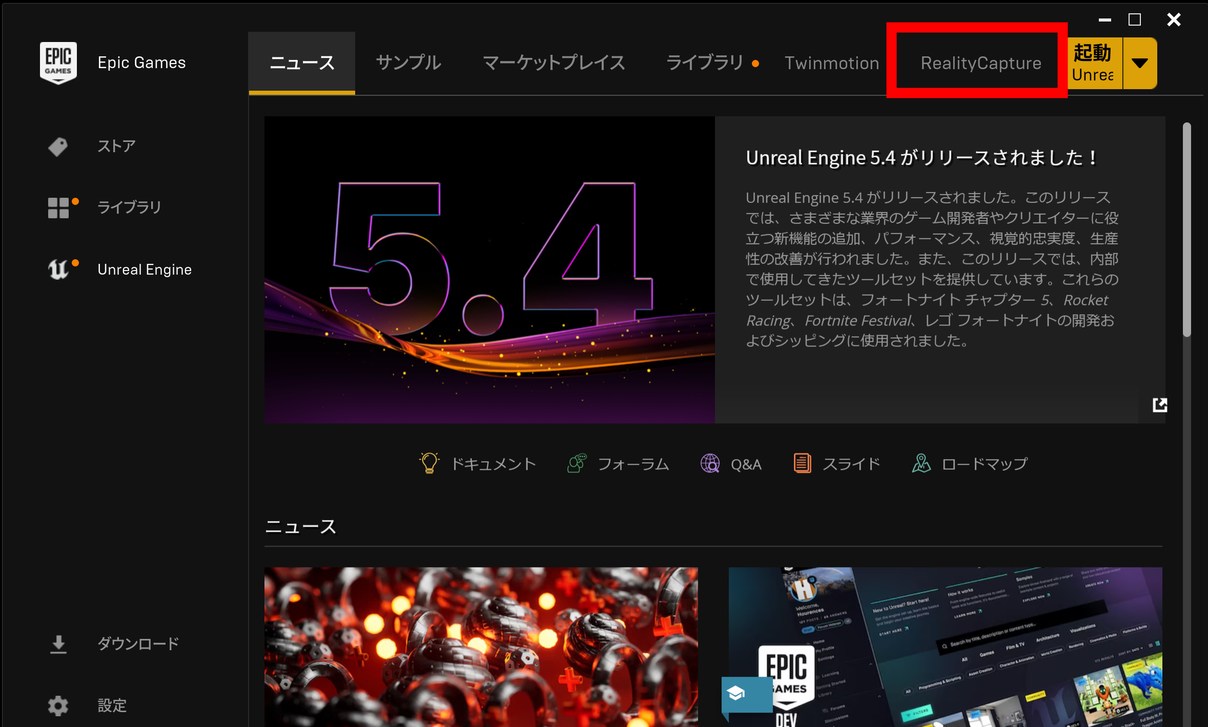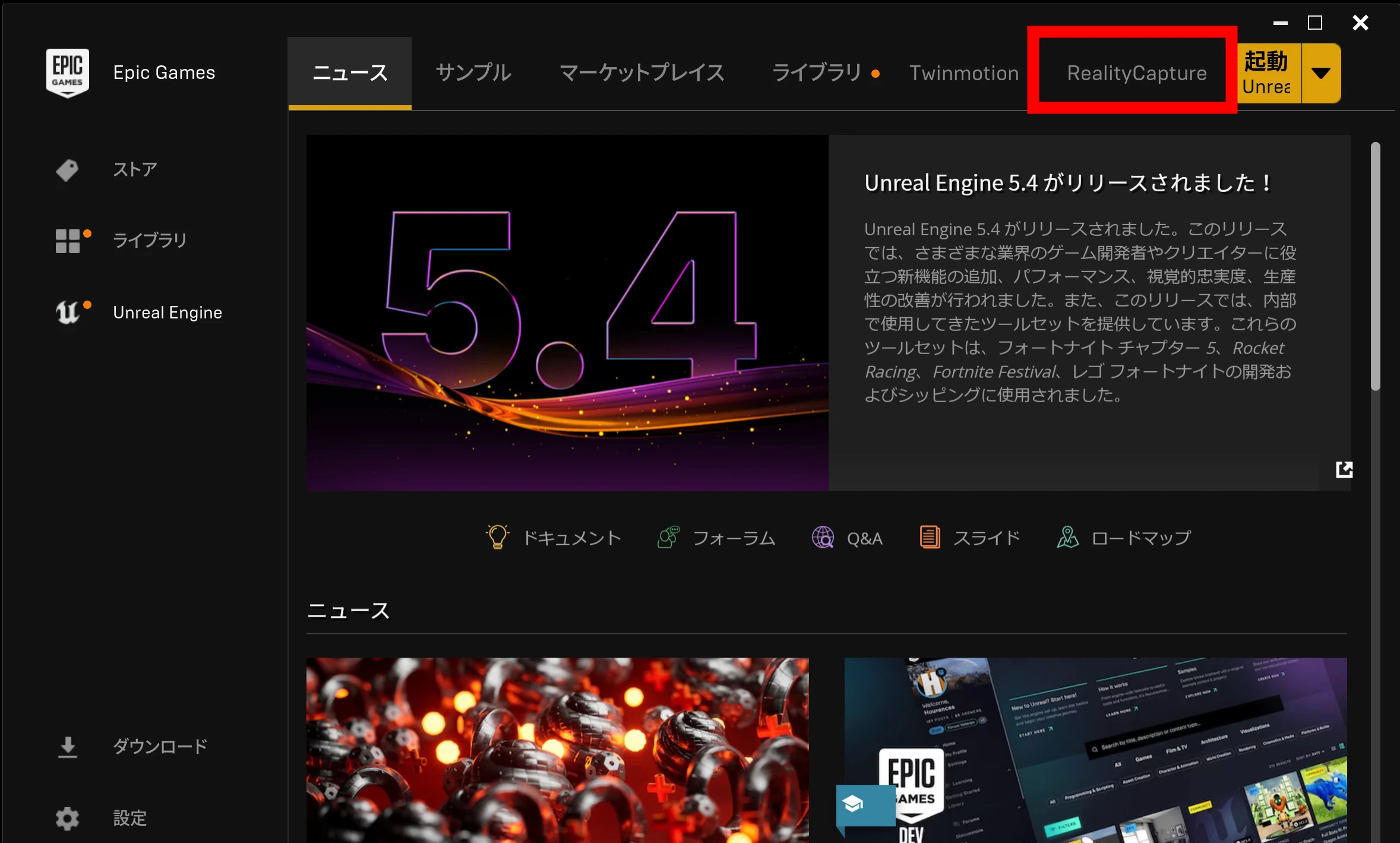 Epic Games ランチャー を用意します。Fortnite などで遊んだことがあれば、すでに入っていることが多いです。ランチャーのタブに RealityScan(旧 RealityCapture) が追加されています。