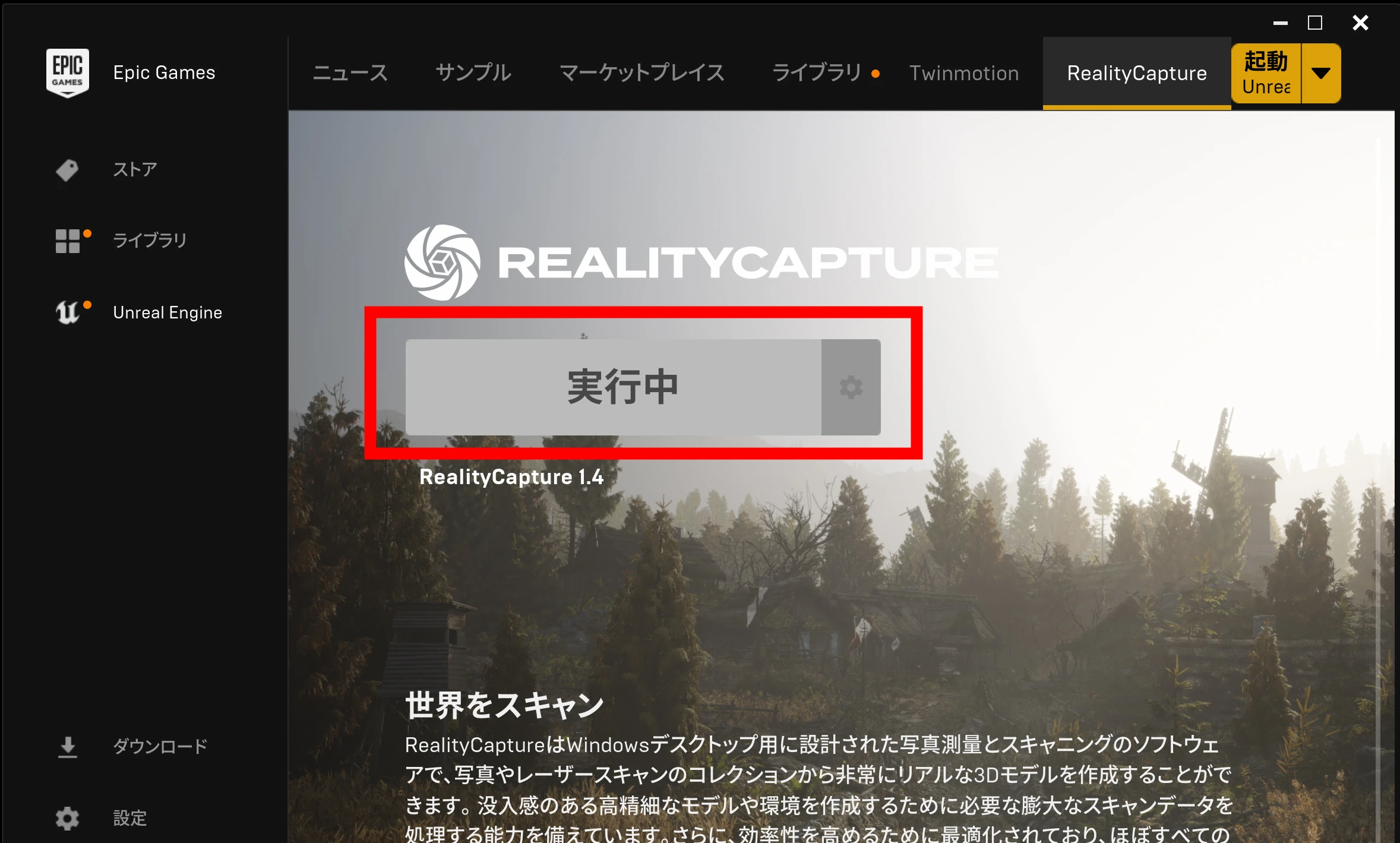 タブを開いて RealityScan をインストールします。起動できれば準備完了です。