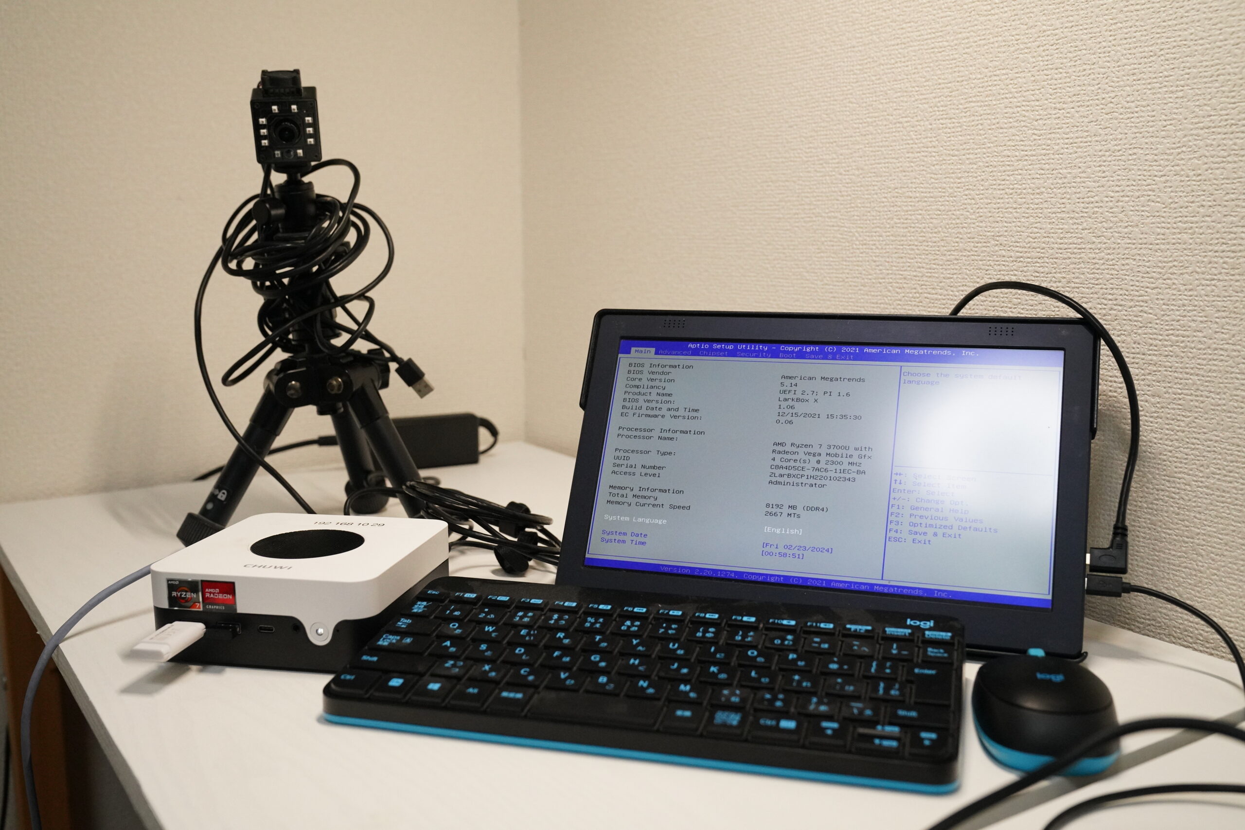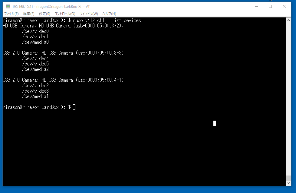 USBカメラはELP USB Webcamシリーズ、OSはUbuntu 22.04、ミニPCはCHUWI LarkBox X AMD Ryzen 3750U 最大4.0GHz 4コア8スレッド 8GB RAM+256GBストレージTera Term 5で作業するので最初にSSHを入れています。