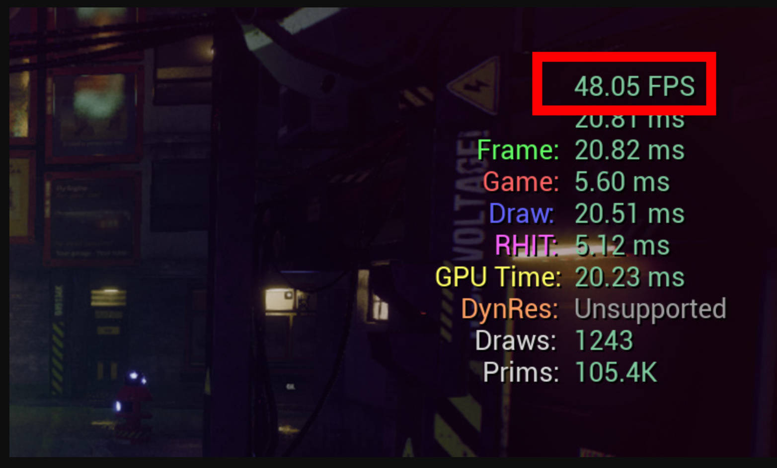以下画面の一番上に数値が、このプロジェクトの実際のfpsです。60fps出るはずが、何かがボトルネックになっており、48fpsしか出ていません。何がボトルネックなのでしょうか。