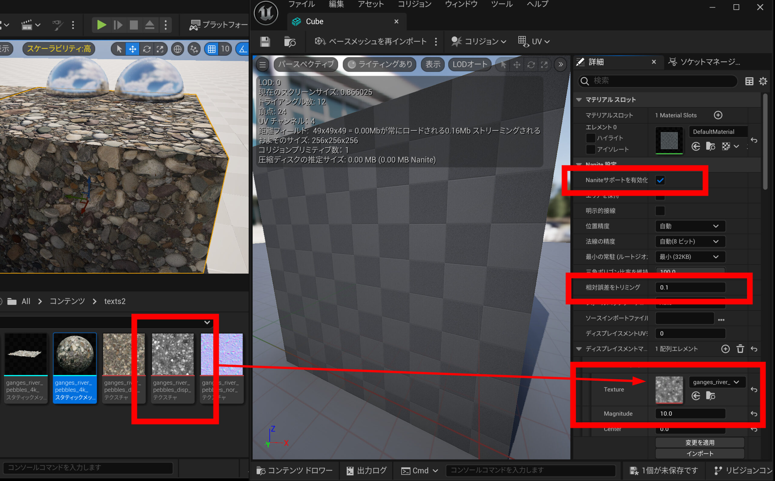 **UE5で簡単にディスプレイメントマップ(Displacement Map)を設定する方法を紹介します。