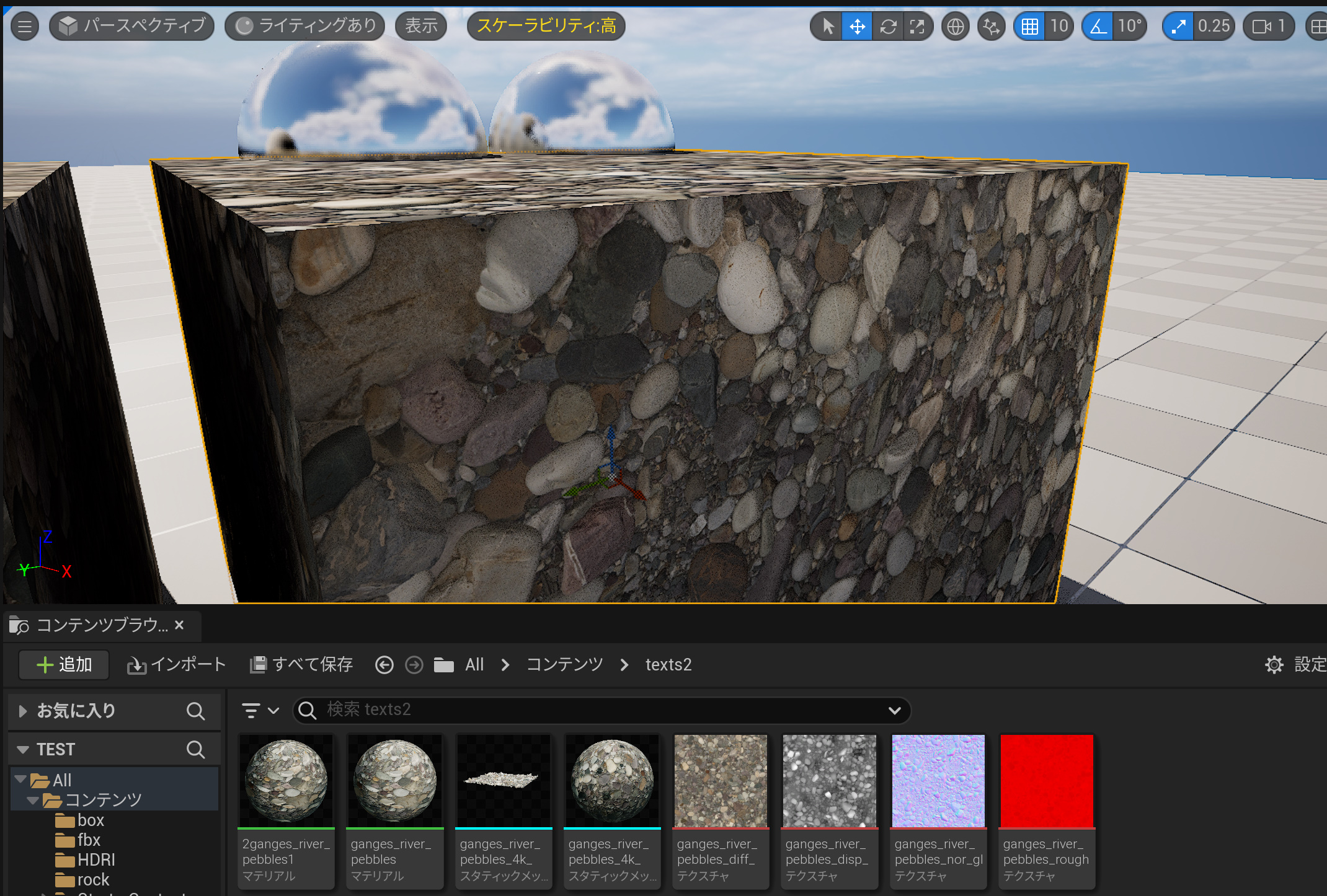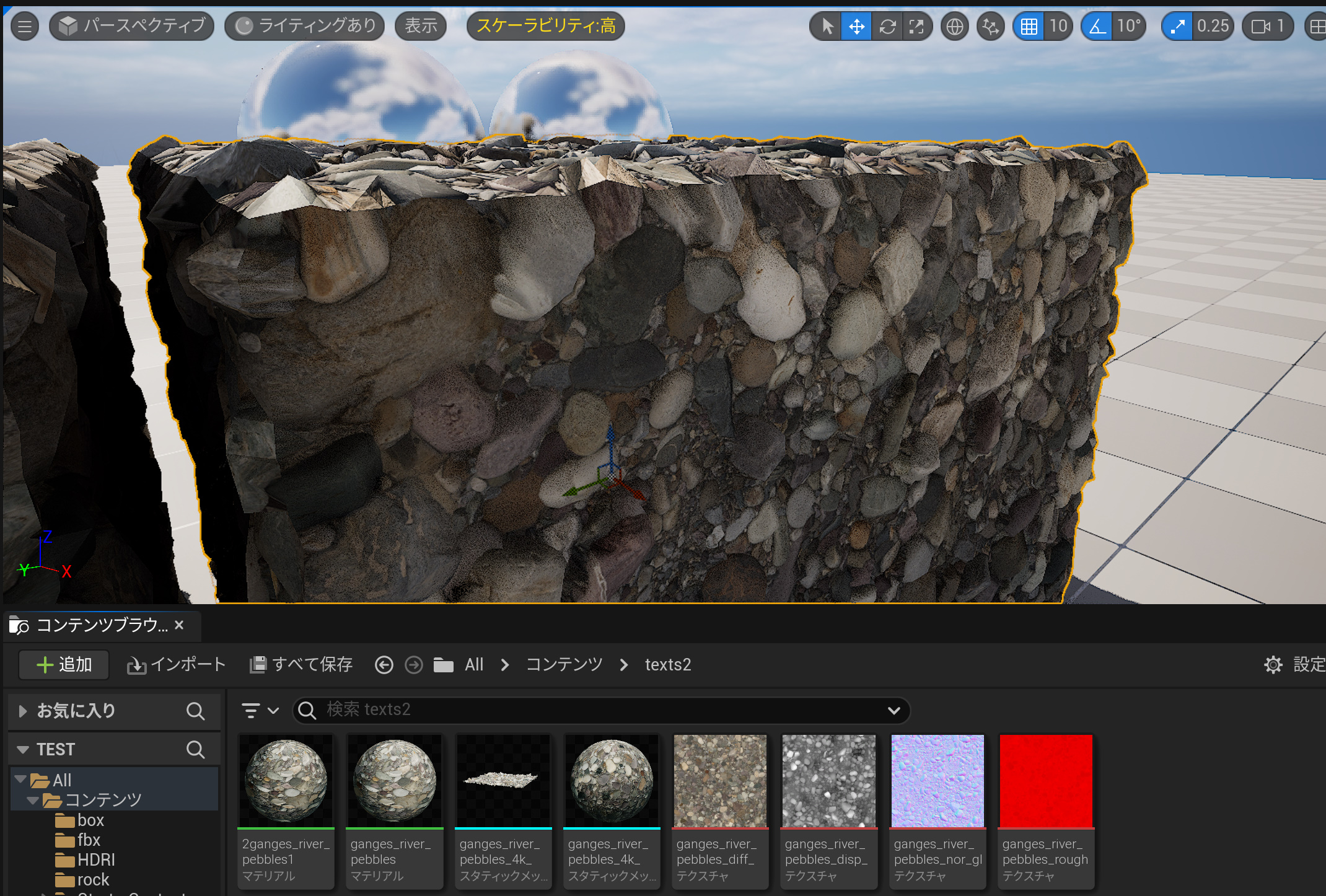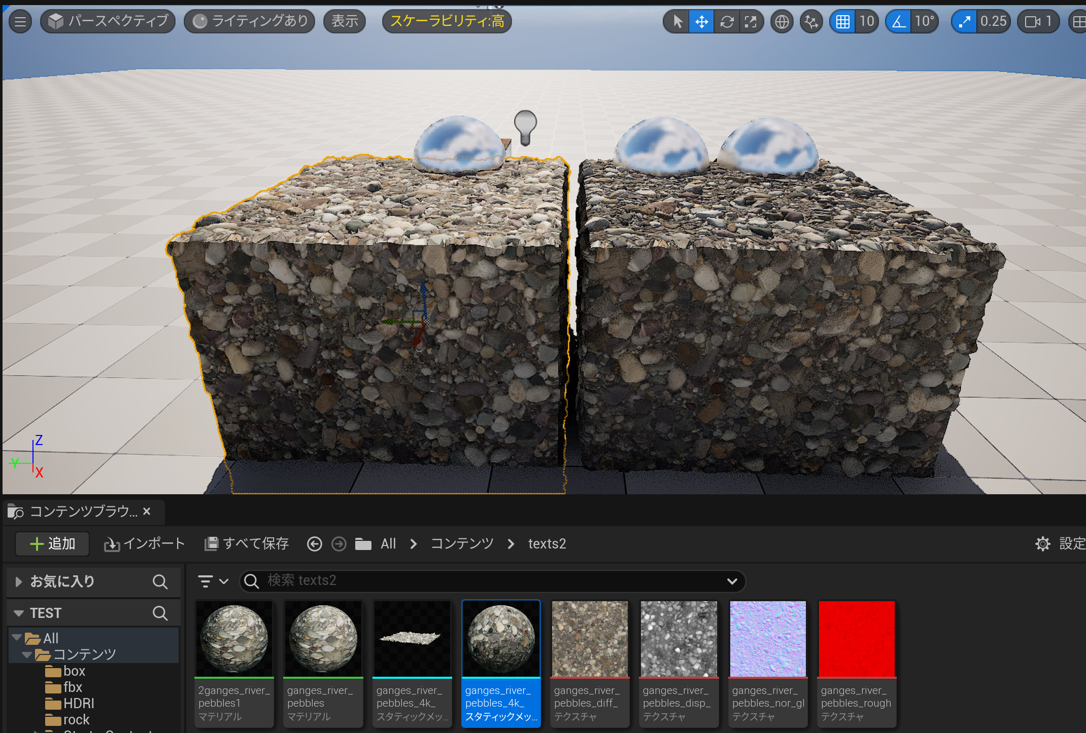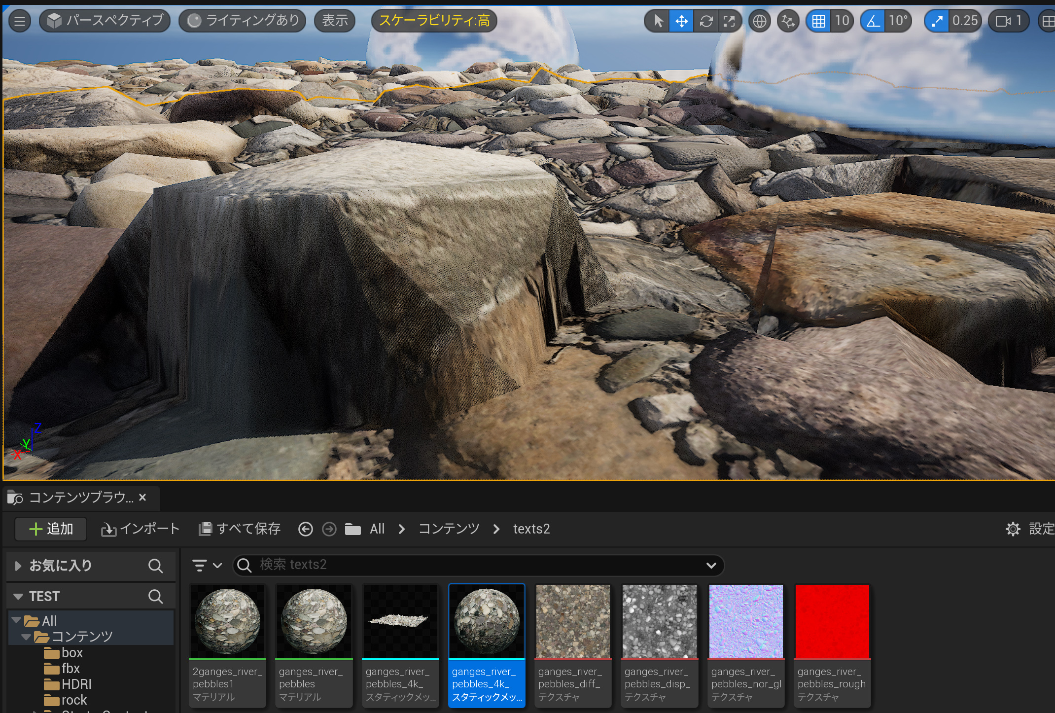 UE4では、ディスプレイメントマップを簡単に使用することができたのですが、UE5からはディスプレイメントマップが簡単に使えなくなりました。LumenやNaniteが導入されたことで、非常に高いディテールを持つジオメトリを処理することが可能になったからです。 とはいえどもPBRマテリアルテクスチャー素材を使ったときに、テクスチャー素材だけだと凹凸の表現がノーマルマップだけになるのは寂しいです。何かもっと簡単にUE5でディスプレイメントマップ(Displacement Map)を使えないものかと調べてみました。 **難しい設定をすればUE5でもディスプレイメントマップ(Displacement Map)を使えるようですが、Tessellationの設定が必要だったり、ブループリントの設定が必要だったり、DefaultEngine.iniの書き換えが必要であったりします。