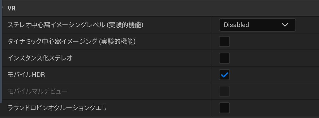 プロジェクト設定のレンダリングのVRなどのオプションも効果があったり、無かったり、上手く動かなかったりします。今一歩、効果が明確にわかりません。