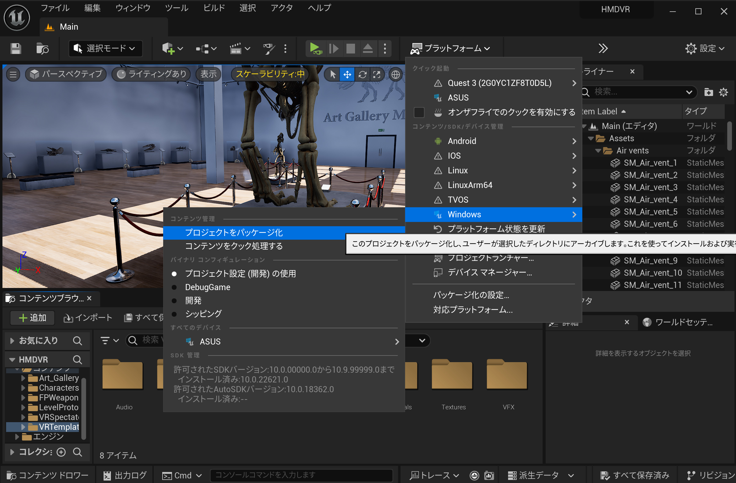 Unreal Engine 5 (UE5) を使用して、Windows環境でヘッドマウントディスプレイ(HMD)対応のアプリケーションを作成し、パッケージ化する方法について説明します。