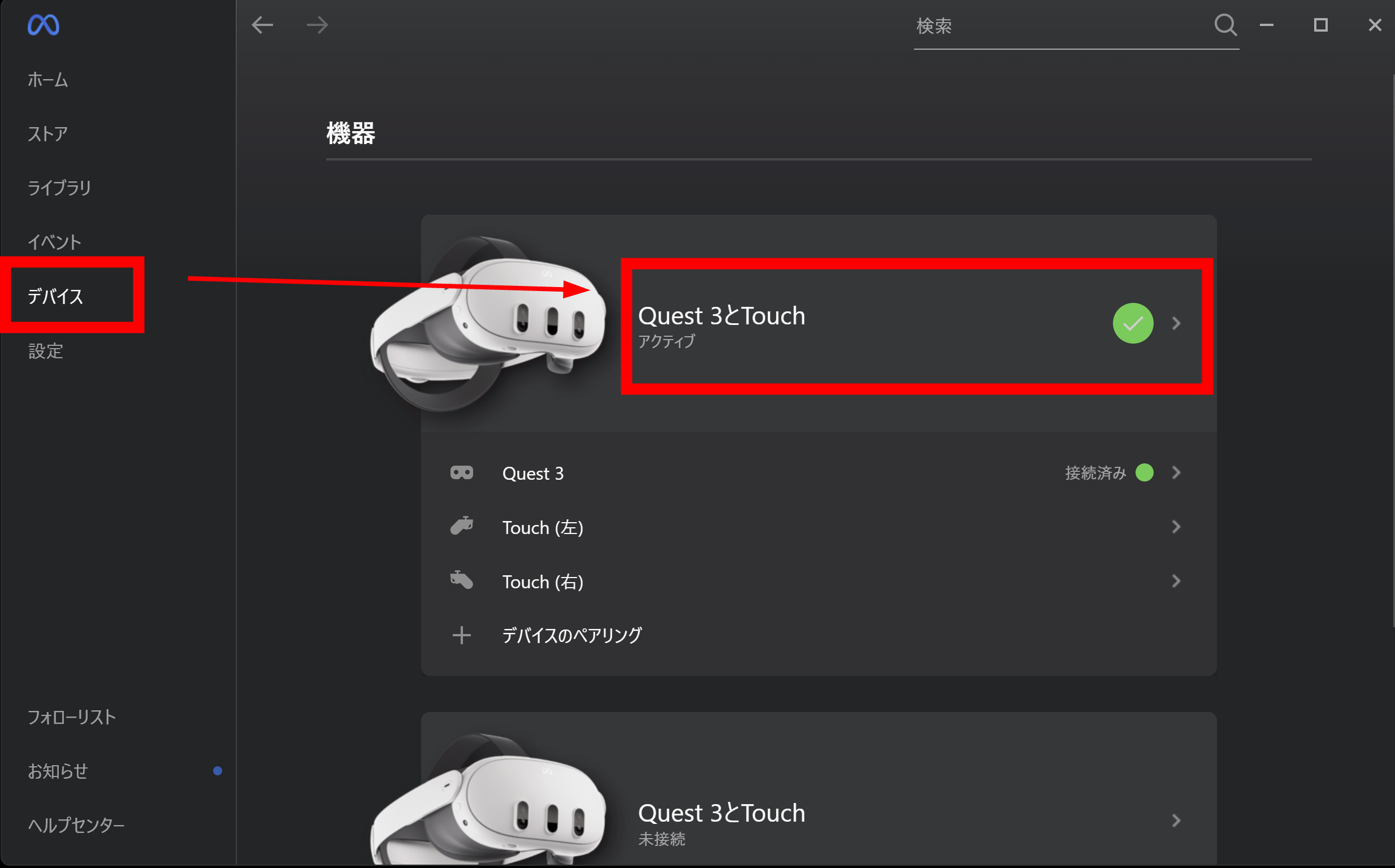 Meta Quest3を接続