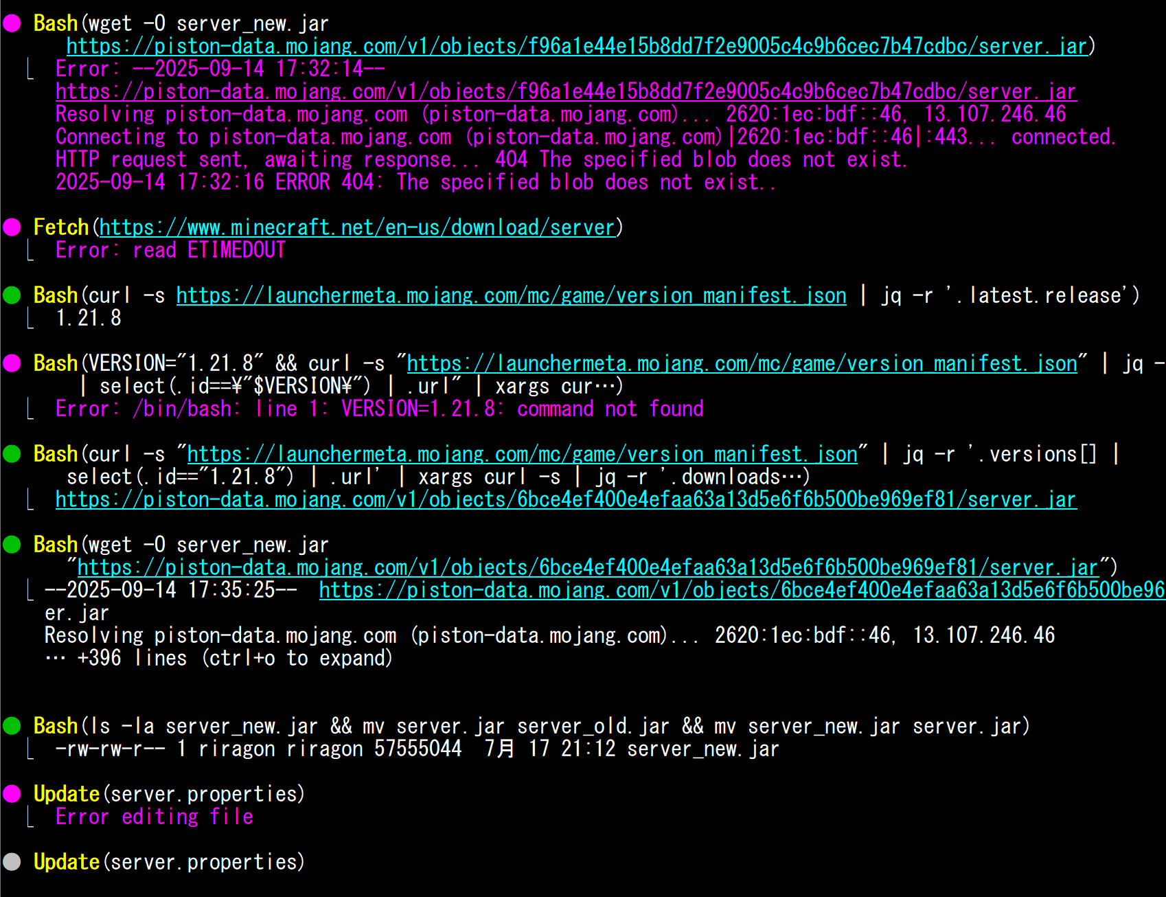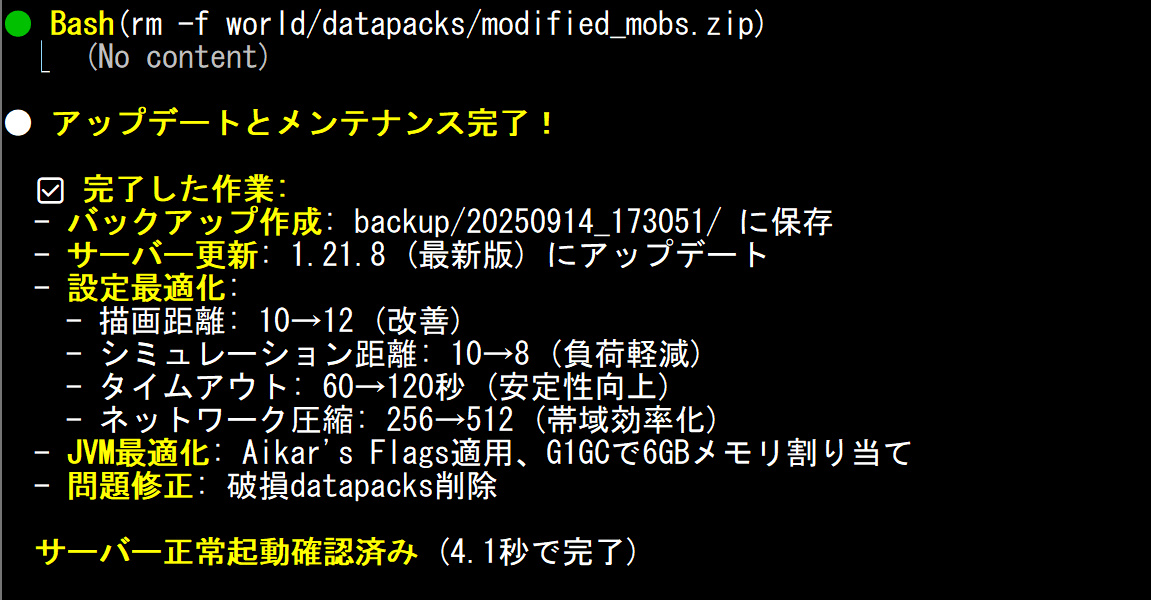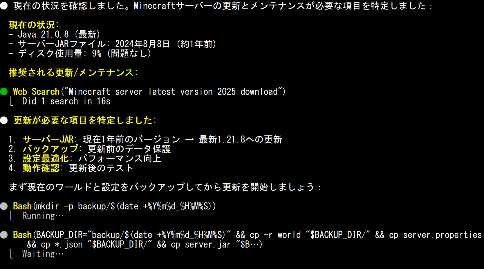 現状の分析とMinecraftサーバーの更新が提案されました。ほうほう。