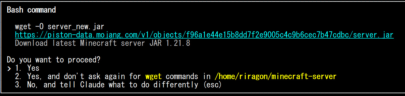 つまり劇的な破壊へ向かっていても把握できずに実行されてゆく恐怖はありますね。仕事の端末にぶち込んで作業するのはちょっと恐ろしいです。でもいずれそうなるでしょうね。だってさエラーだって設定だって、すべてAIのほうが深く理解しているからです。ということで、マインクラフトの更新をAIだけで1$でやってくれました。