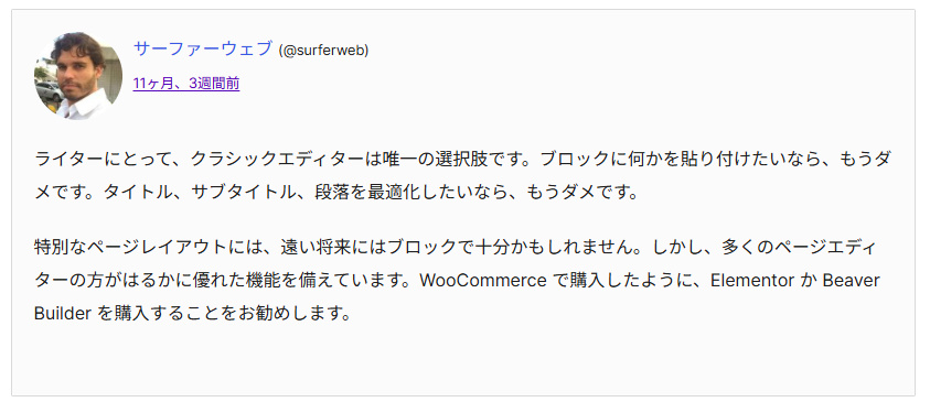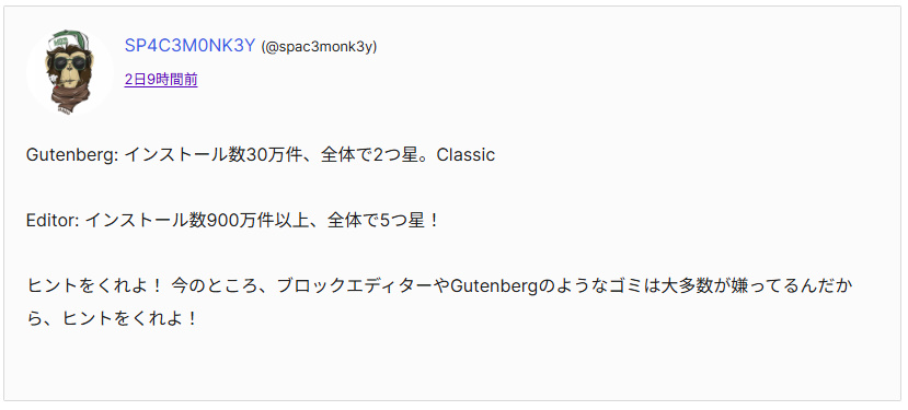 Woredperssではクラシックエディターに戻すプラグインを使うのです。900万人も使っています。評価も星5です。どれだけの人がアンチブロックエディターなのかわかるでしょう。